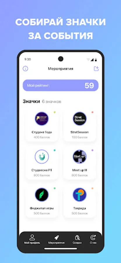 Complete tasks, participate in events and get rating badges.