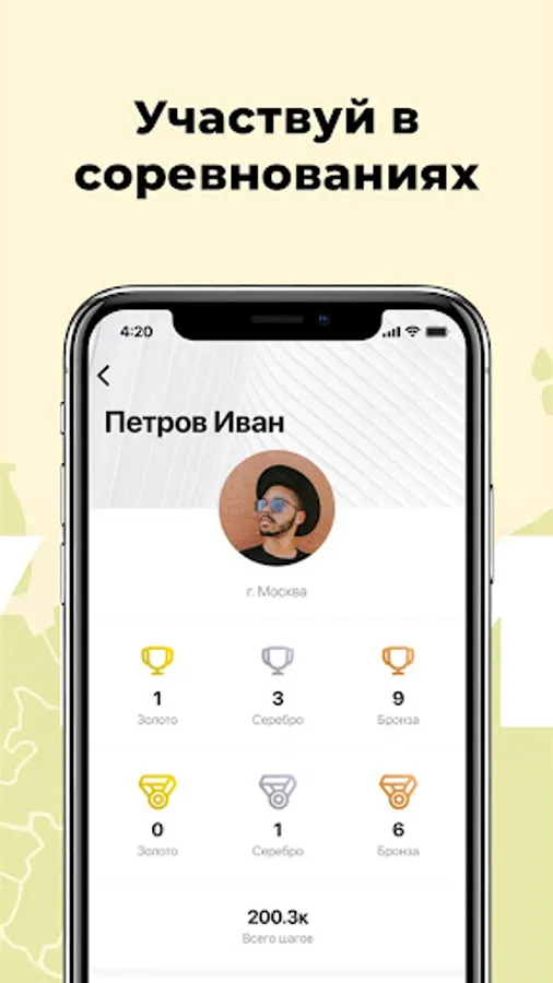 The Walking Man mobile application allows you to take part in team competitions in background walking (the number of steps per day).