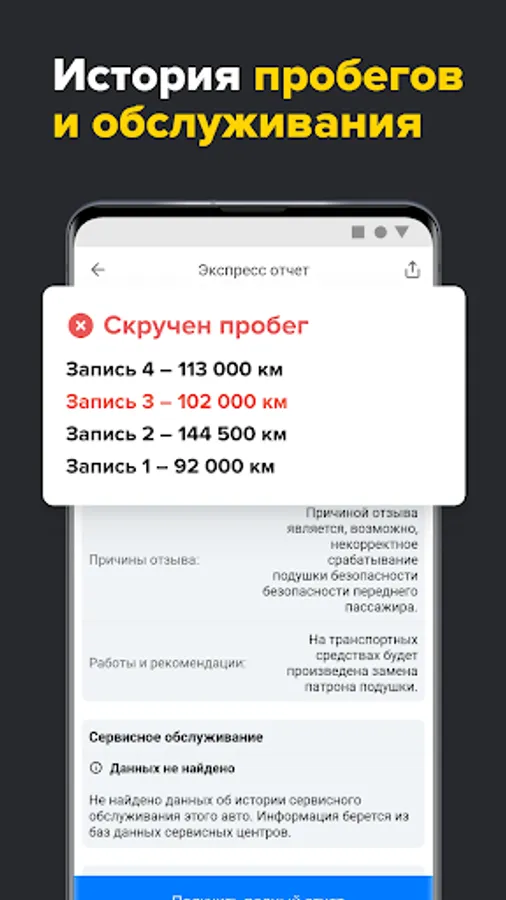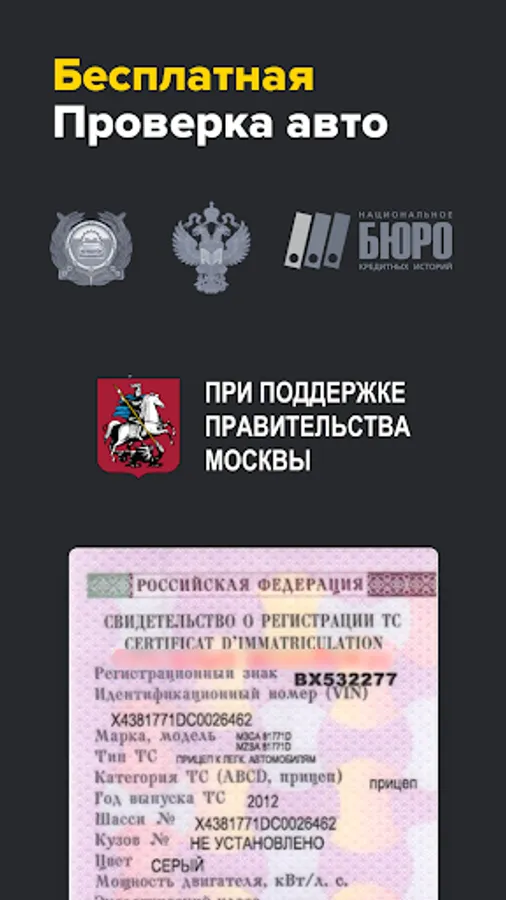 BASES OF STAFF - a convenient auto-expert assistant to break through a used car. You can do all the checks in the application for free. There is only one built-in purchase - “Version PRO”. It opens up additional sources of checks for VIN and Gosnomer.