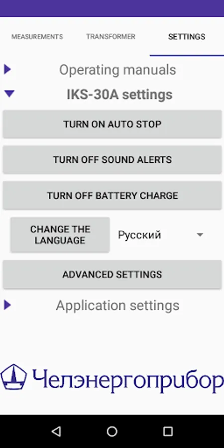 Application IKS-30A is designed for remote control of the microohmmeter IKS-30A with the ability to save measurement results and test reports of single-phase and three-phase transformers in the device memory.
