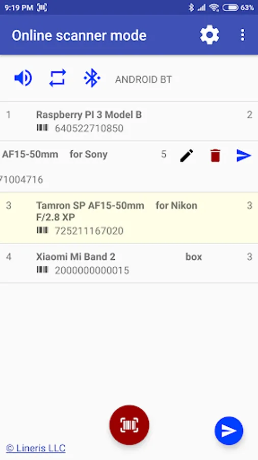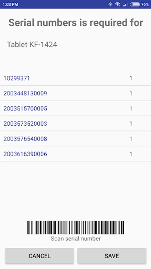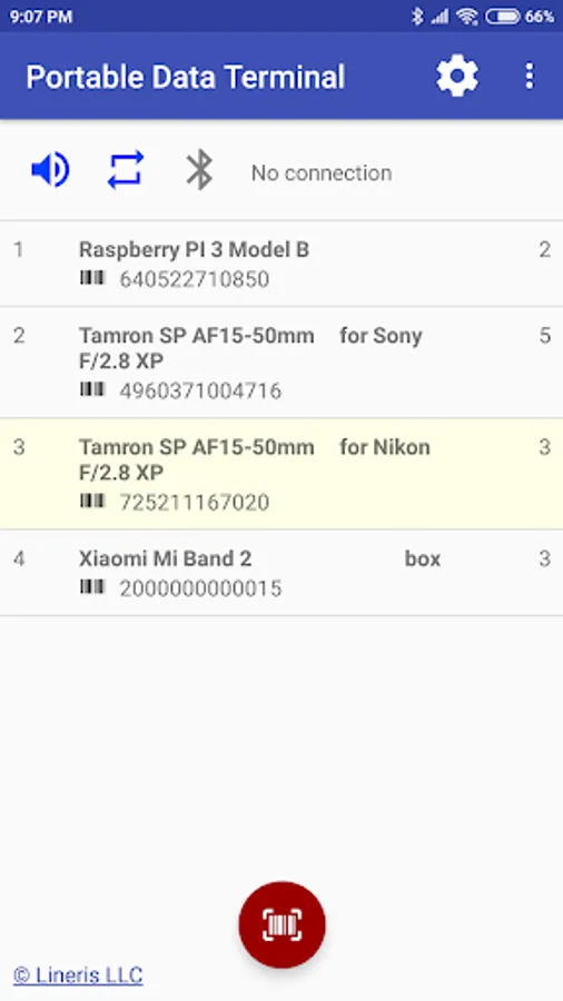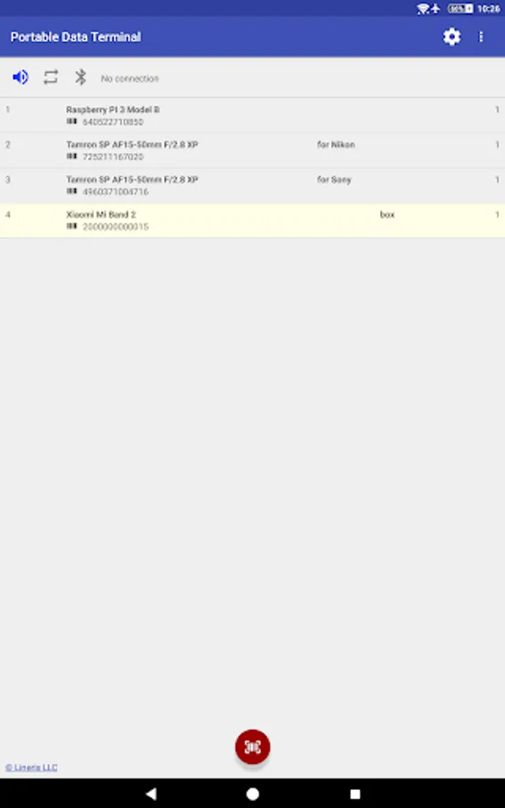 When your smartphone is connected to PC or POS this application immediately tramsmits the scanned barcodes via RFCOMM. If there is no connection the application automatically switches to portable data terminal mode and save all barcodes in database for use later. Version 1.3.0 and high support serial numbers.
