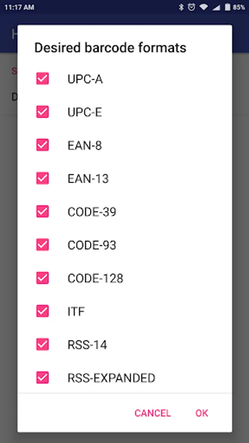 Camera-scanner read all the popular barcodes: UPC-A, UPC-E, EAN-8, EAN-13, Code 39, Code 93, Code 128, ITF, Codabar, RSS-14, RSS Expanded, QR Code, Data Matrix, MaxiCode, PDF417.