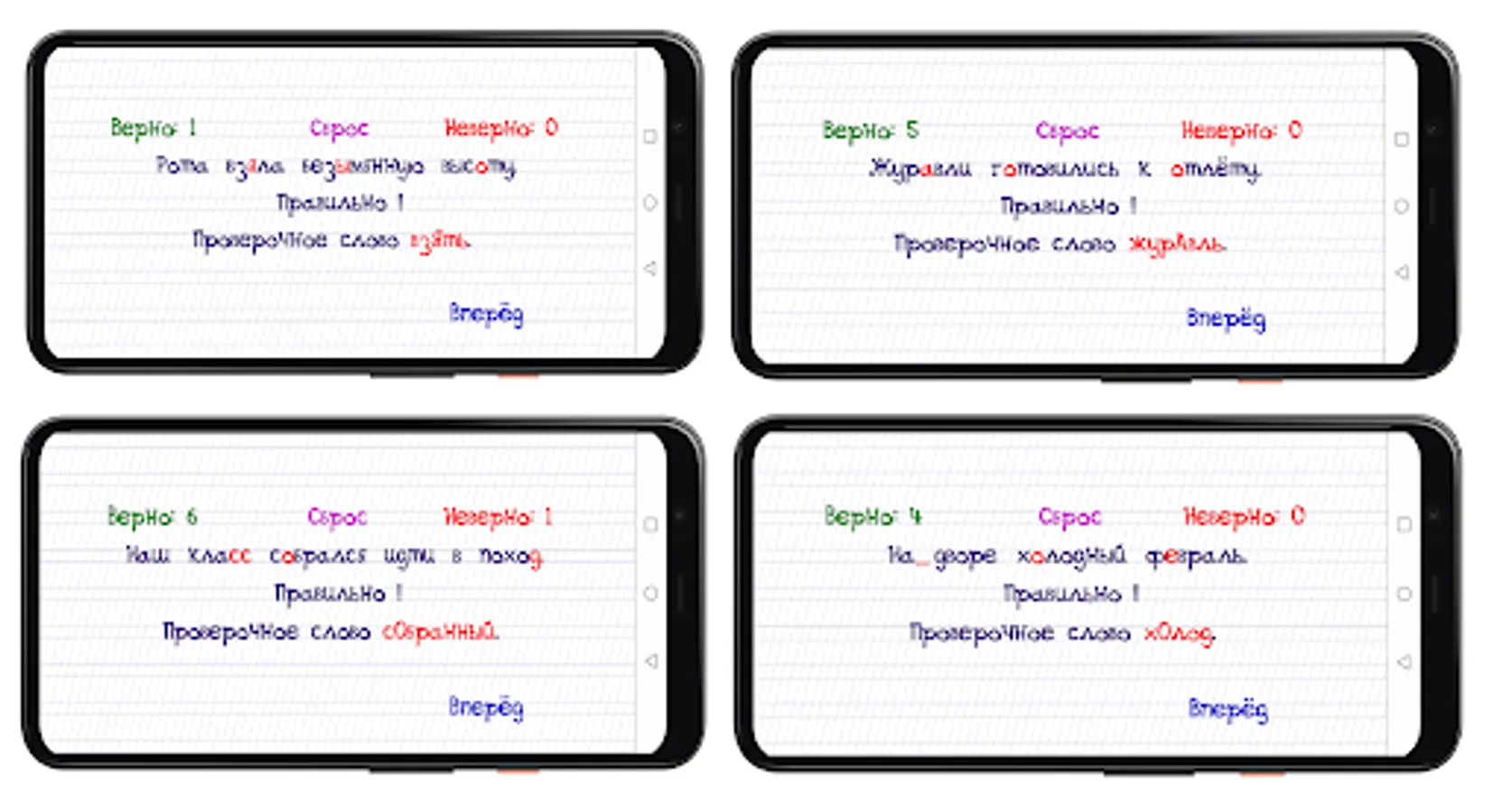 The simulator program will help reduce the cost of boring dictations with tutors. We plan to add a quiz and games soon. Solve tests and exercises, raising the level of Russian language proficiency.