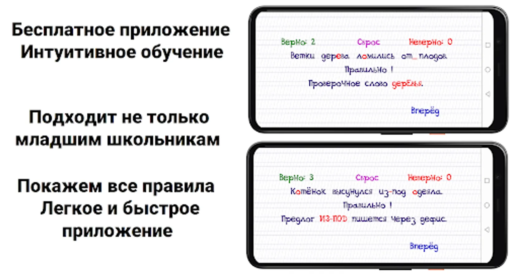 The program is aimed at school age, but can be useful even for adults. Contains 280 phrases with an analysis of the key rules of spelling and grammar. The assistant program will make you literate.
