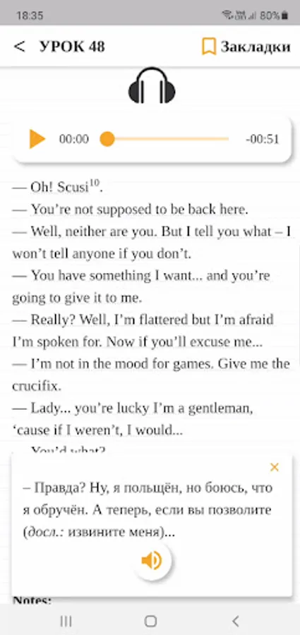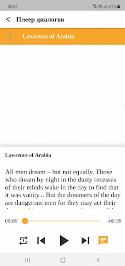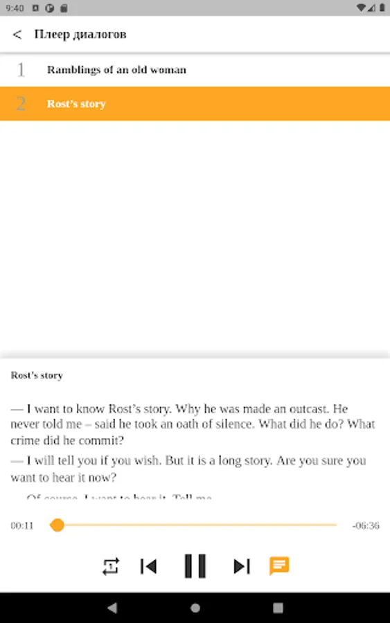 - Mini-player for listening to a part of the dialogue or a separate sentence.