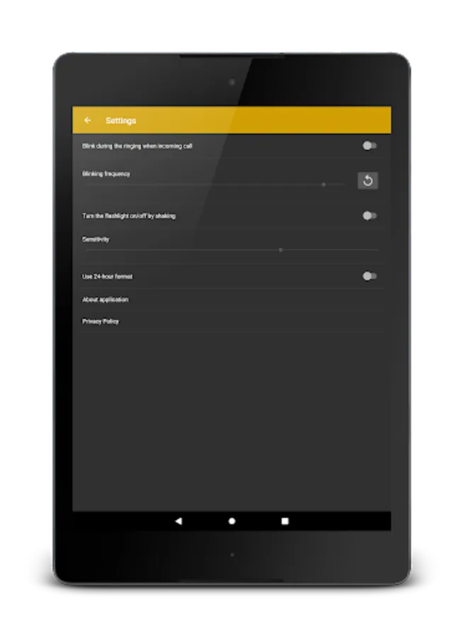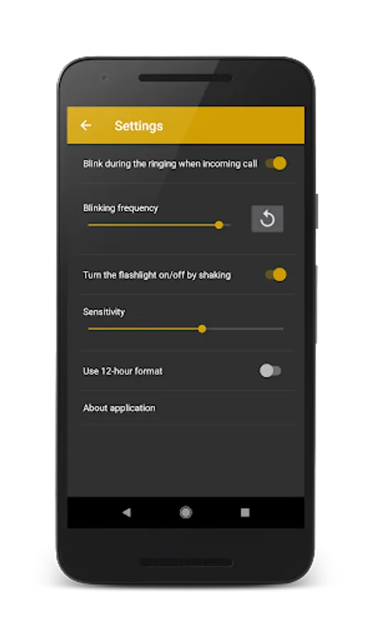 Flashlight on shake. The app supports turn on or off the flashlight by shaking.
