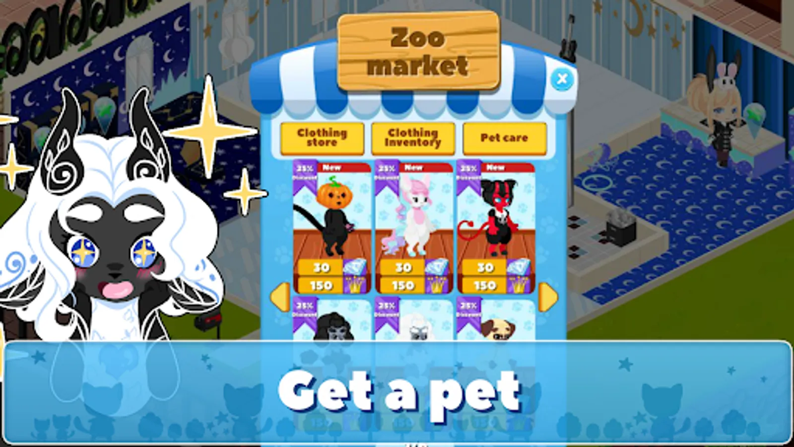 Enter the game and create your character choosing from a huge number of clothes, accessories and auras. Visit locations, chat and make new acquaintances. Rate the image of other players. There are 4 professions to choose from to earn in-game currency for you, move up the career ladder and get a salary increase. Choosing a job will open up the possibility of crafting clothes and furniture. Complete tasks and communicate with in-game NPCs. Get yourself pets, as well as create your own home interior. Participate in exciting in-game events and collect unique themed clothes and furniture.