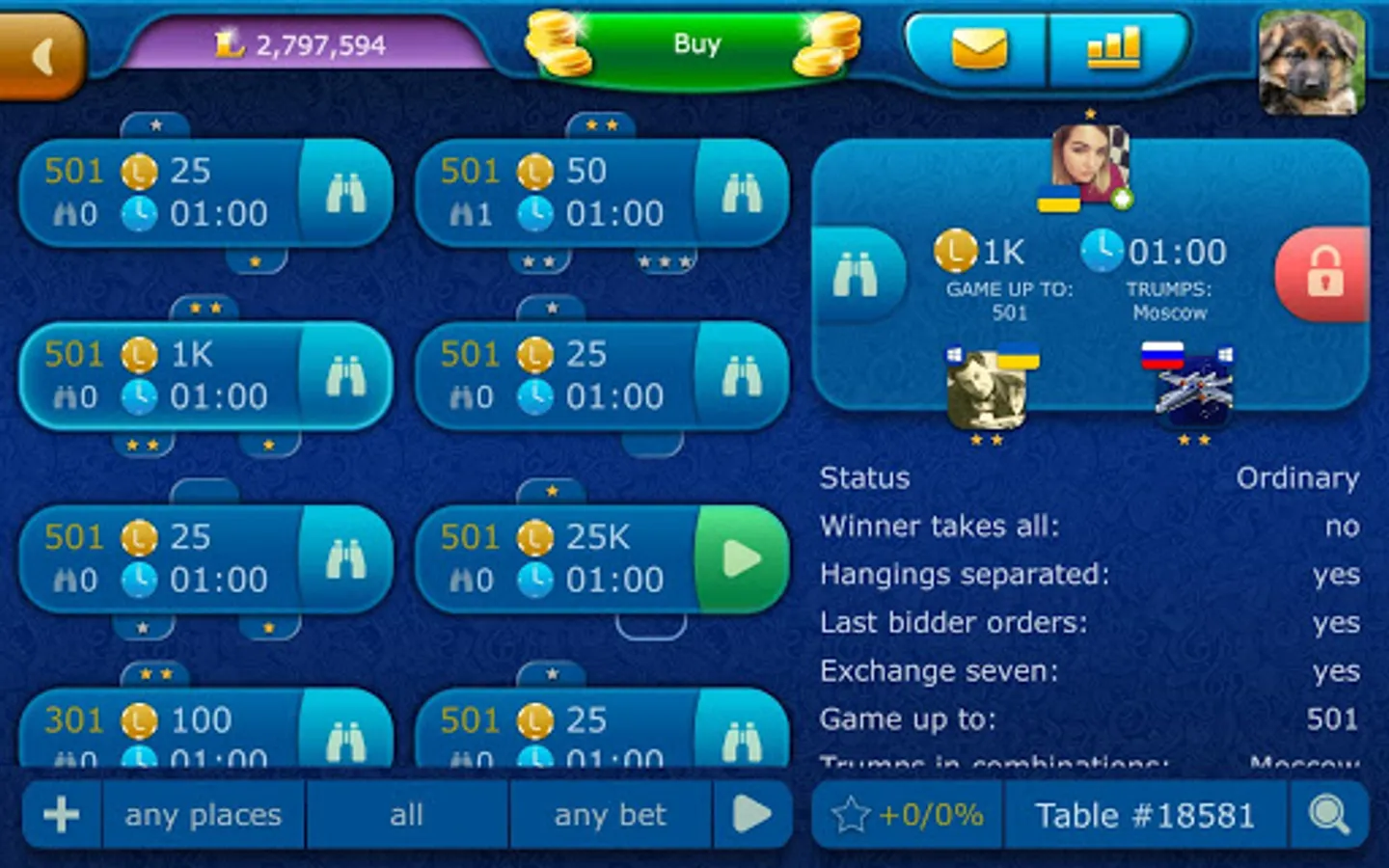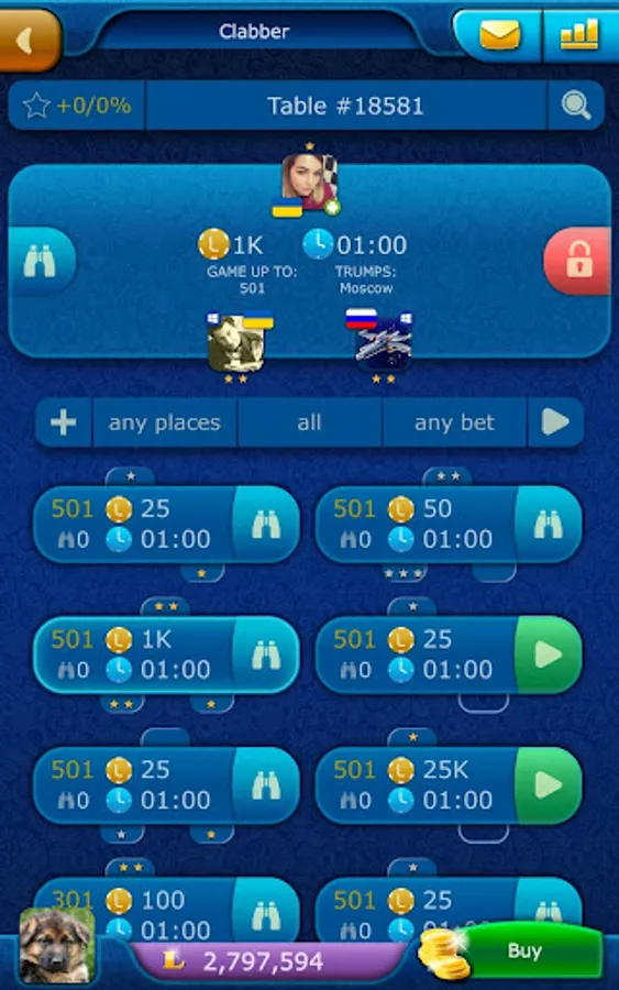 Only adult and intelligent players. Game is a great way to meet new people. Play Clabber, show your skills and prove your advantage.