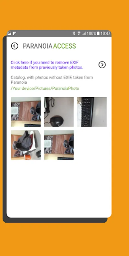 In this version, Paranoia Access TP, you can delete metadata on any previously taken photos.