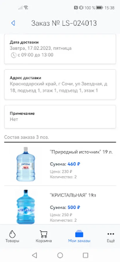 Water delivery in Sochi, Adler and Tuapse is absolutely free. Register an application and the selected products will be at your home within a few hours.