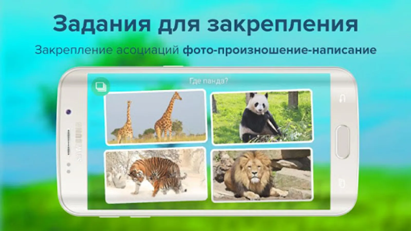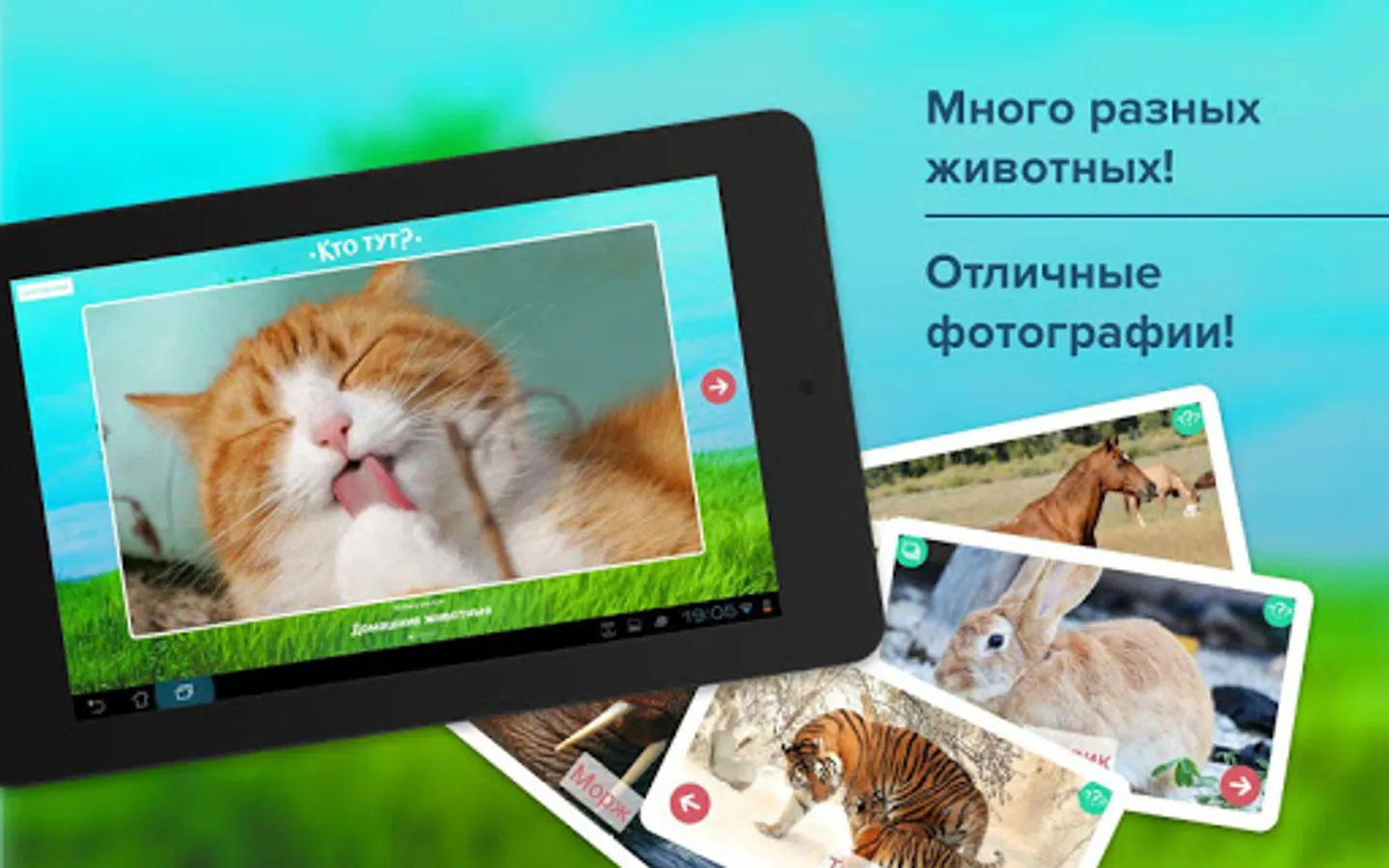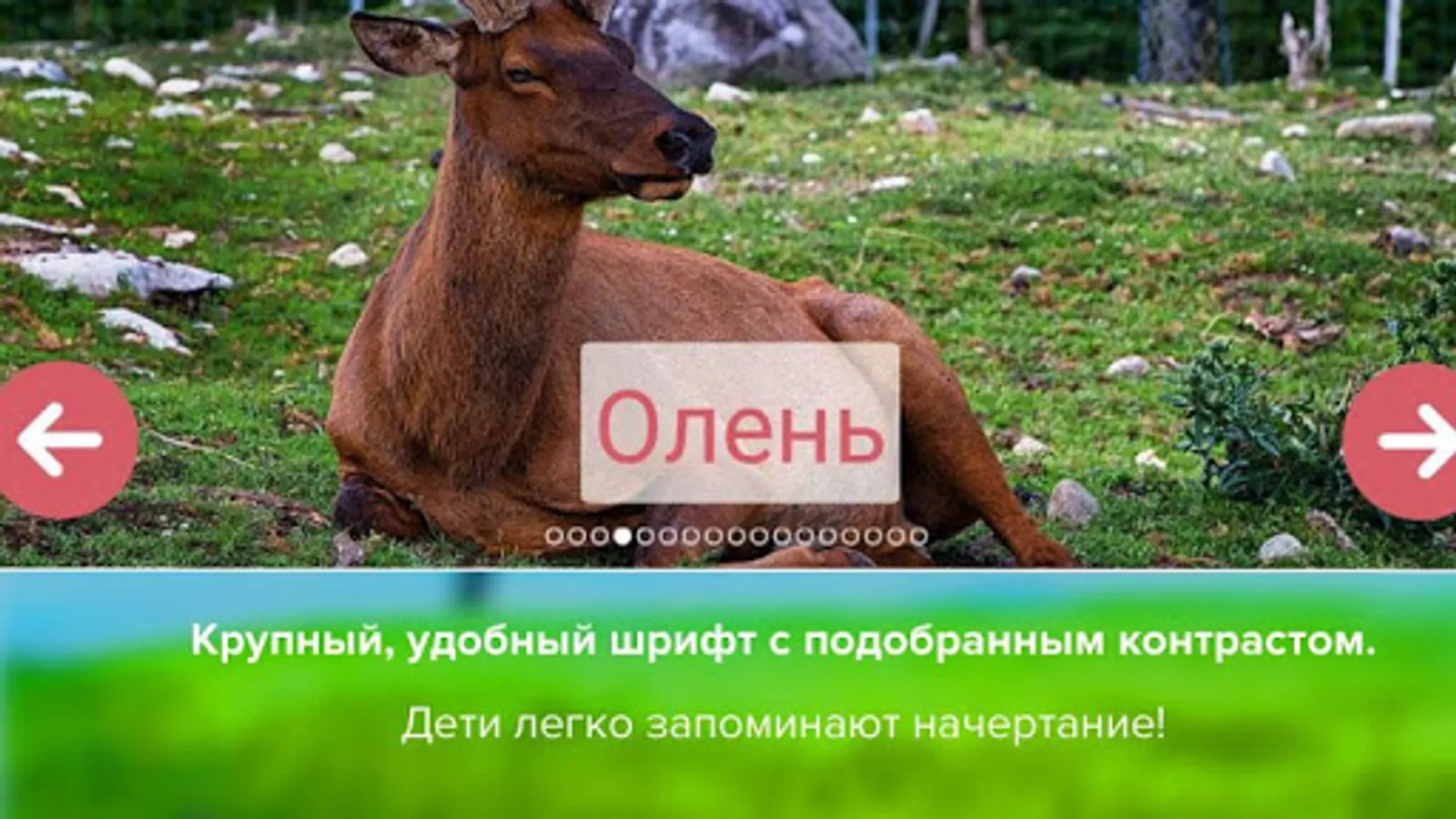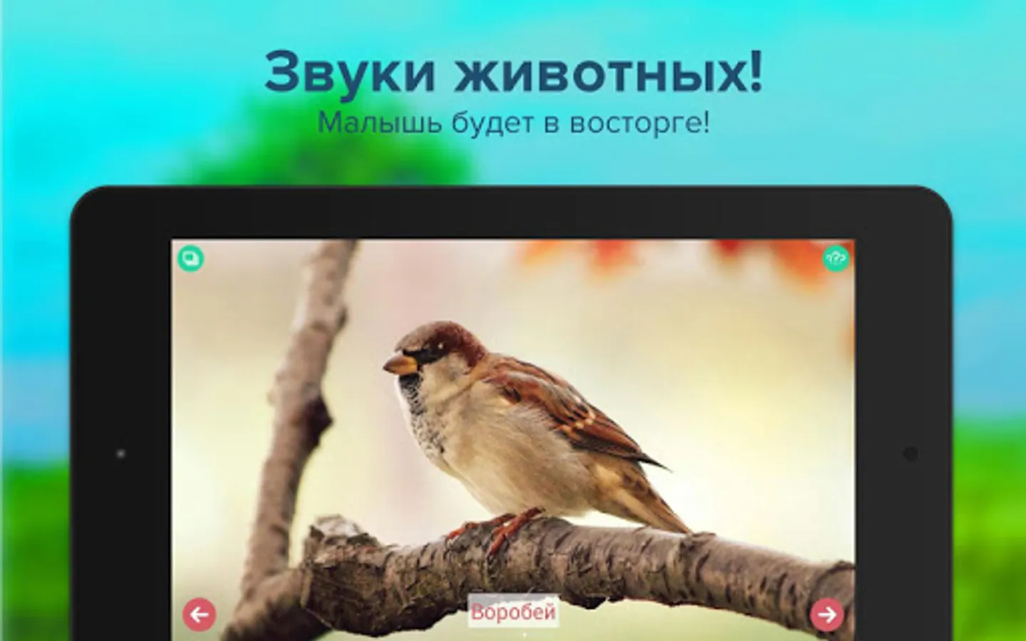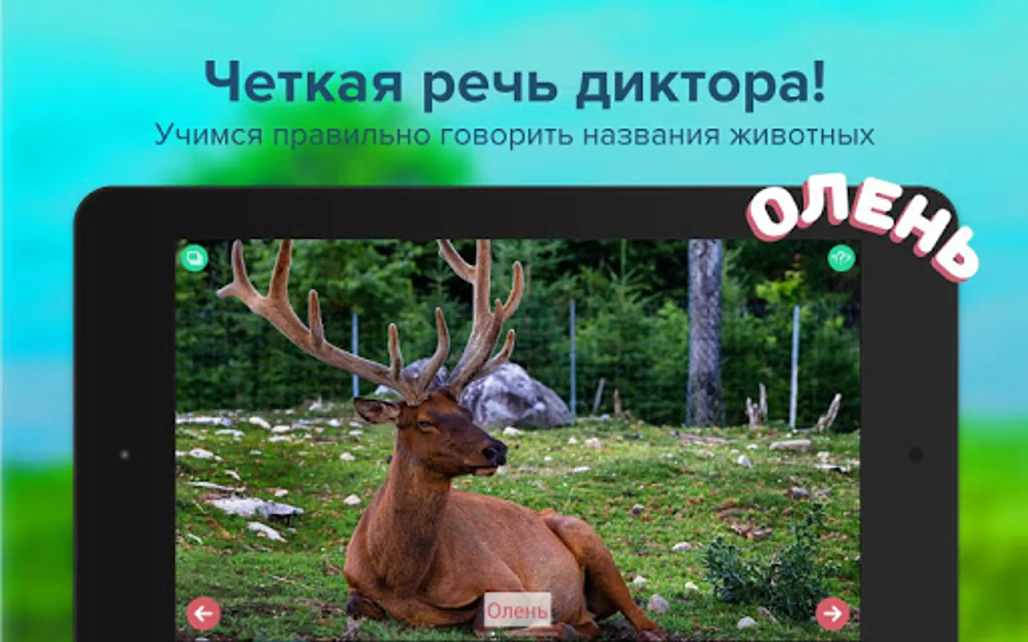 Carefully selected photos, an intuitive and simple interface, sounds of animals, their names, voiced by an excellent female voice of the announcer not only contribute to the development of memory and speech, but also immerse the child in an exciting journey through the animal world.