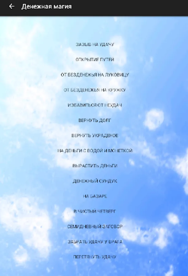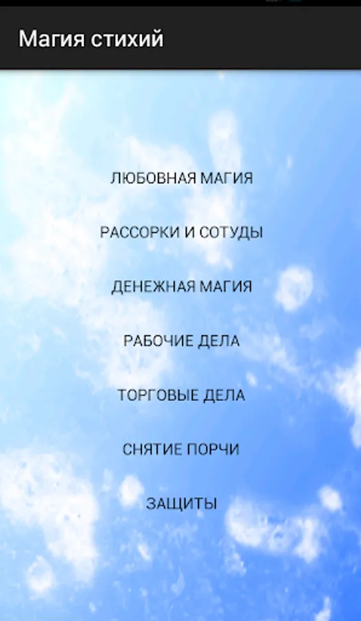 The collection of magical charms and rituals on the themes: love magic, otvorotnaya magic money magic, the magic to work, trading magic, protective rituals and rites of purification from negative programs. All plots with reference to the power of the elements, or build in their own magical power caster.