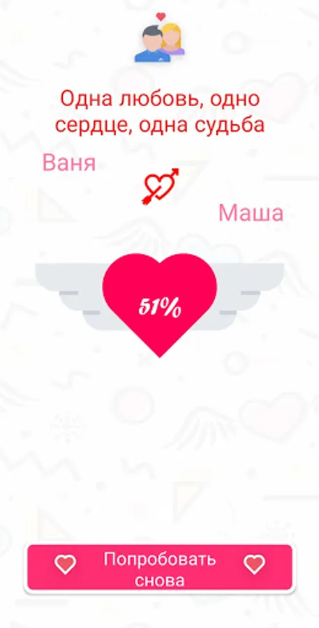 The names are not random and our calculator will prove it! At the end of the test, you can take a screenshot and send it to your significant other!