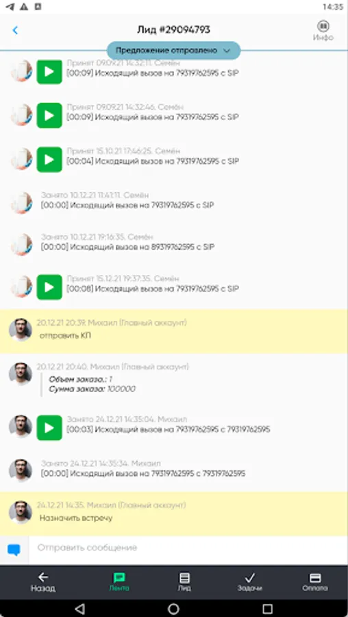 LPTracker is a CRM system, callback, call tracking (call analytics), website builder, auto funnel, cloud telephony, call recording, e-mail and sms distribution, identification of phone numbers of your website visitors without a request or a call.