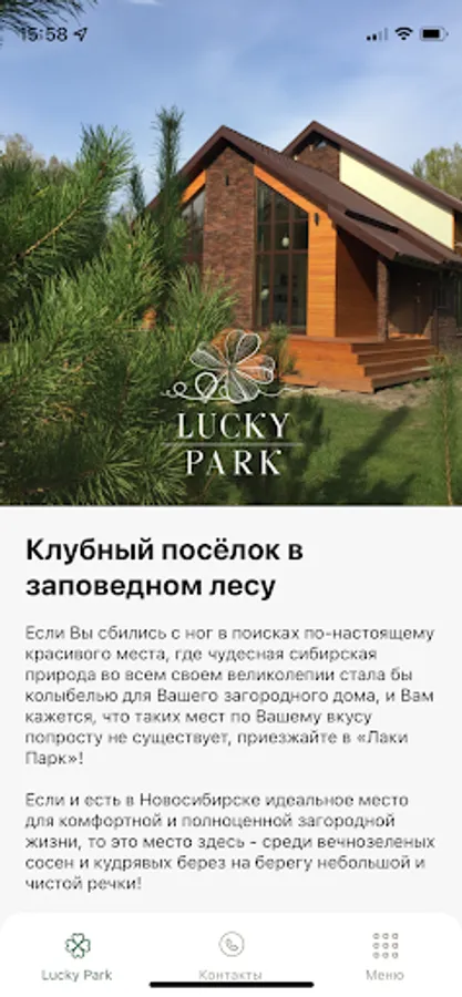 The free mobile application Lucky Park is your personal assistant in any matters related to site maintenance, information about the restaurant, shuttle and other services. The cottage village was established in 2015 and is developing every year.