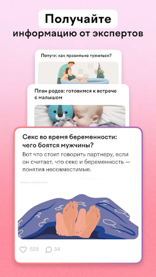 5. Tips and Articles for Moms-to-be: Access a vast library of articles, tips and expert advice on keeping moms-to-be healthy. In the All About Pregnancy section, you will find articles that will give answers to the most difficult questions in an understandable language: how the fetus develops, what should be the fetal heartbeat, is my pregnancy normal, how is the date of birth determined by menstruation, what to do when I felt the fetus move. We give birth to a child without stress.
