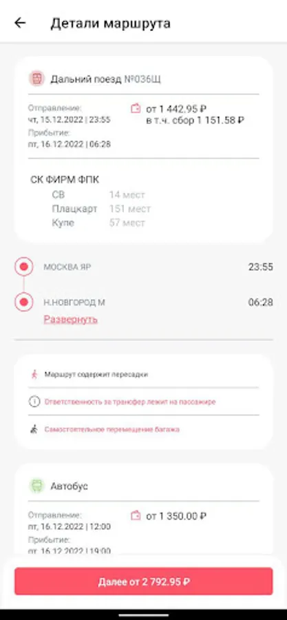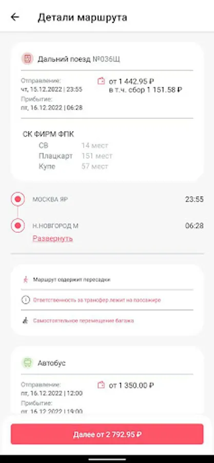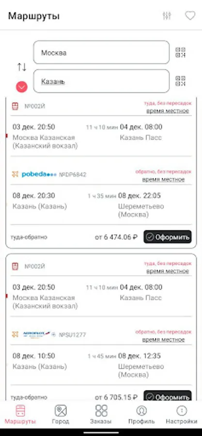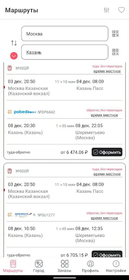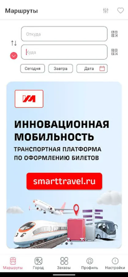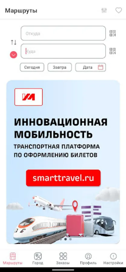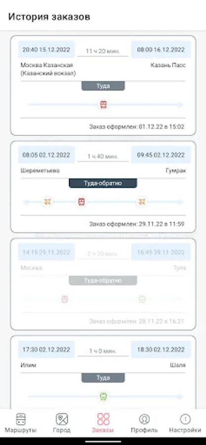 The application will help you build the optimal route and issue tickets. You select the starting and ending points, the application will find all options for direct and composite routes and offer to issue tickets for any type of transport - long-distance trains, electric trains, intercity buses, city river and sea transport and additional services necessary for your trip.