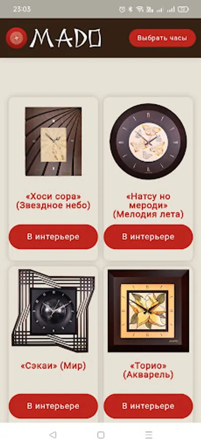 An application to view the look of the Mado clock in your interior