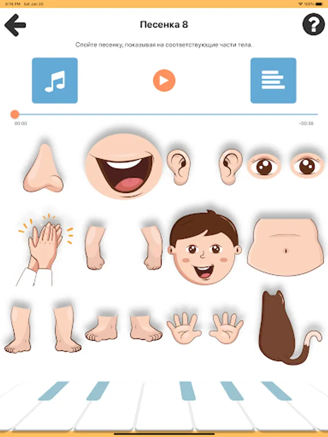 The application contains 62 lessons, this corresponds to approximately one calendar year of study. Each lesson contains a set of workouts, games and songs that children perform with an adult. It is not necessary for an adult to speak English well, because all exercises are voiced and translated! With the help of the Magic Piano lessons, children begin to speak in sentences and come up with their little stories right from the first lesson.