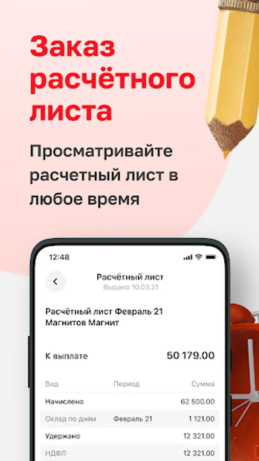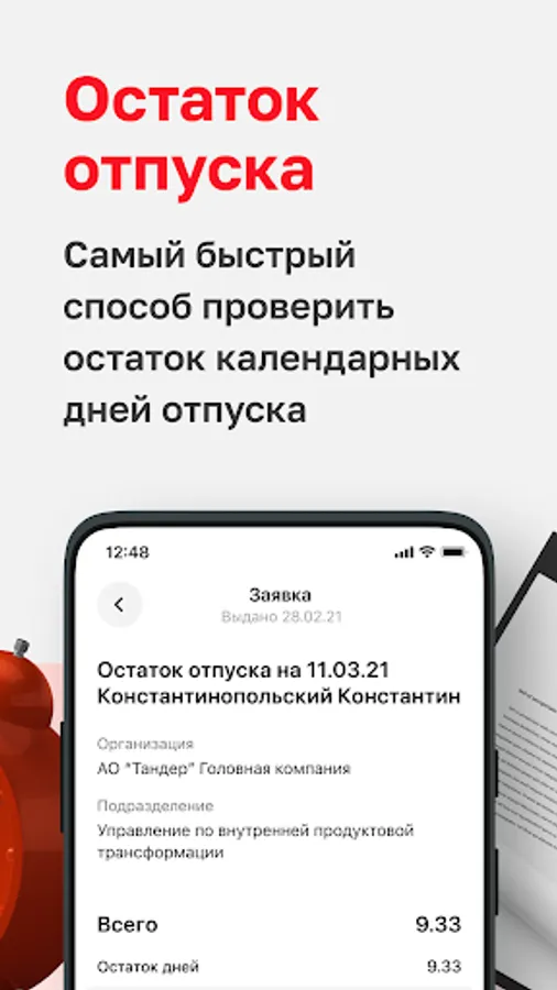 • Get inquiries, pay slip, calculation of the remaining vacation days in a few clicks in the application.