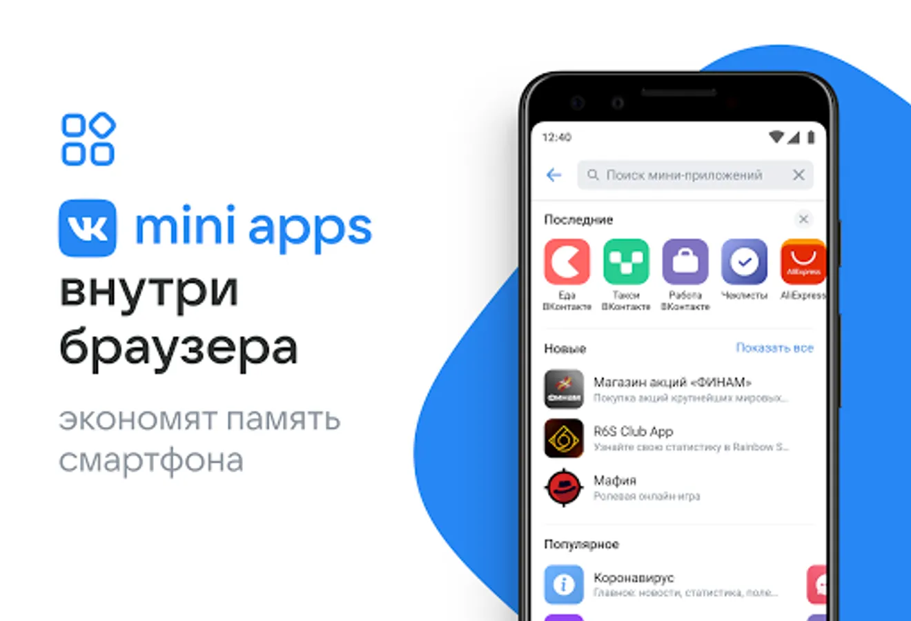 ● Save smartphone memory - launch your favorite applications directly in your browser. Atom has built-in VK Mini Apps , thanks to which applications do not need to be installed on the device and re-authorized in them. A single VK Connect account will pull up your data.