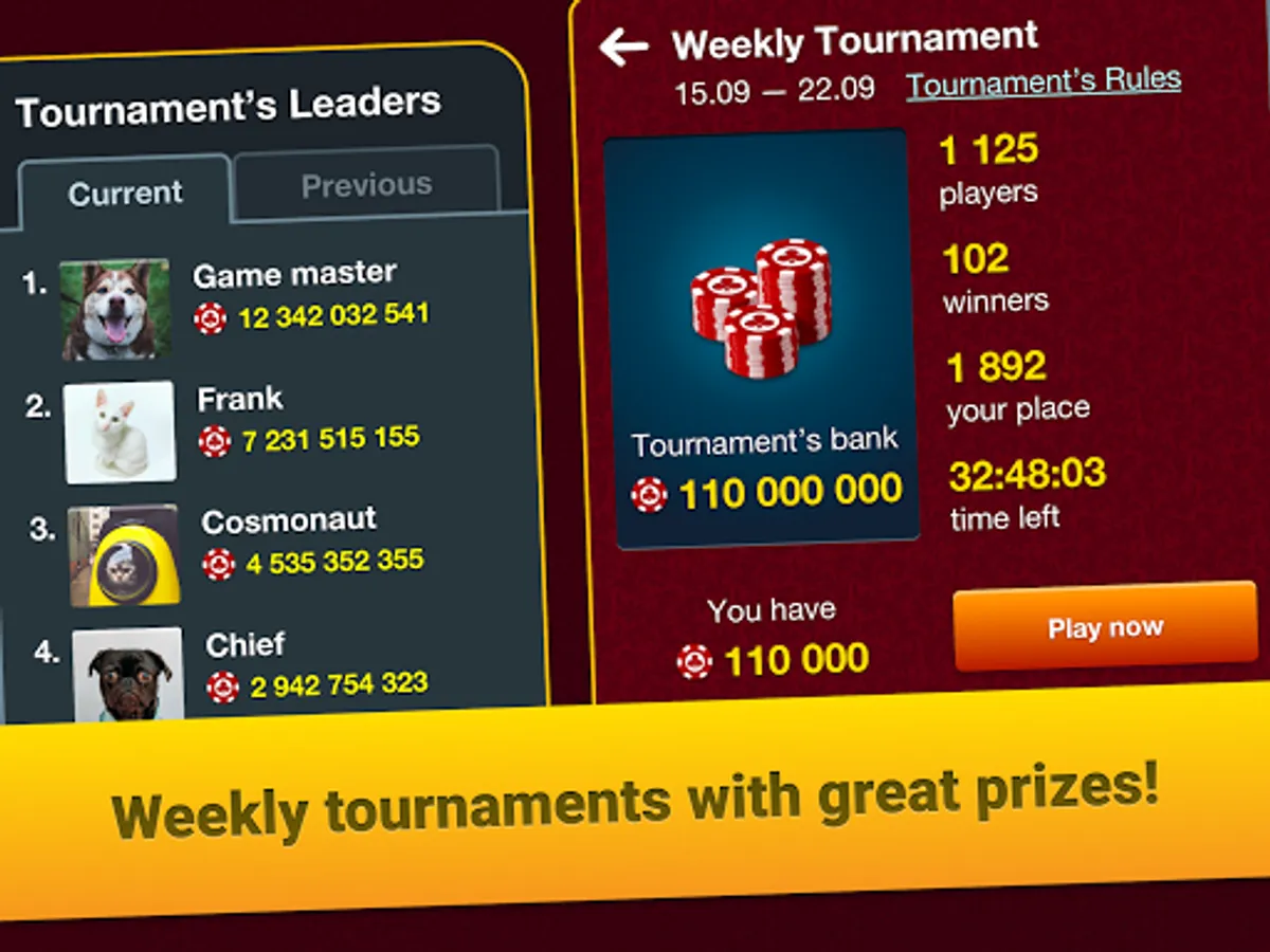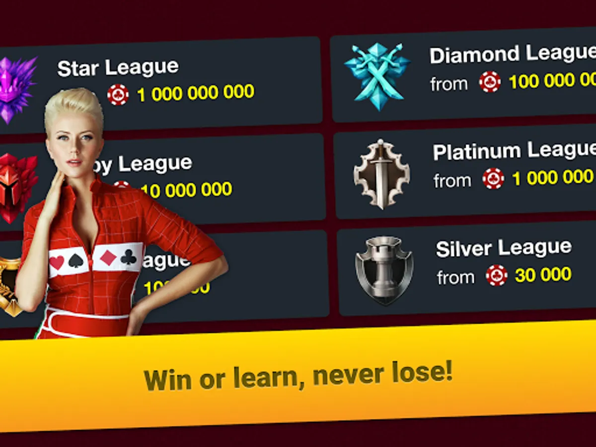 9. Players have a common TOP rating. The Durak Arena has 9 game leagues = 9 levels of your success!