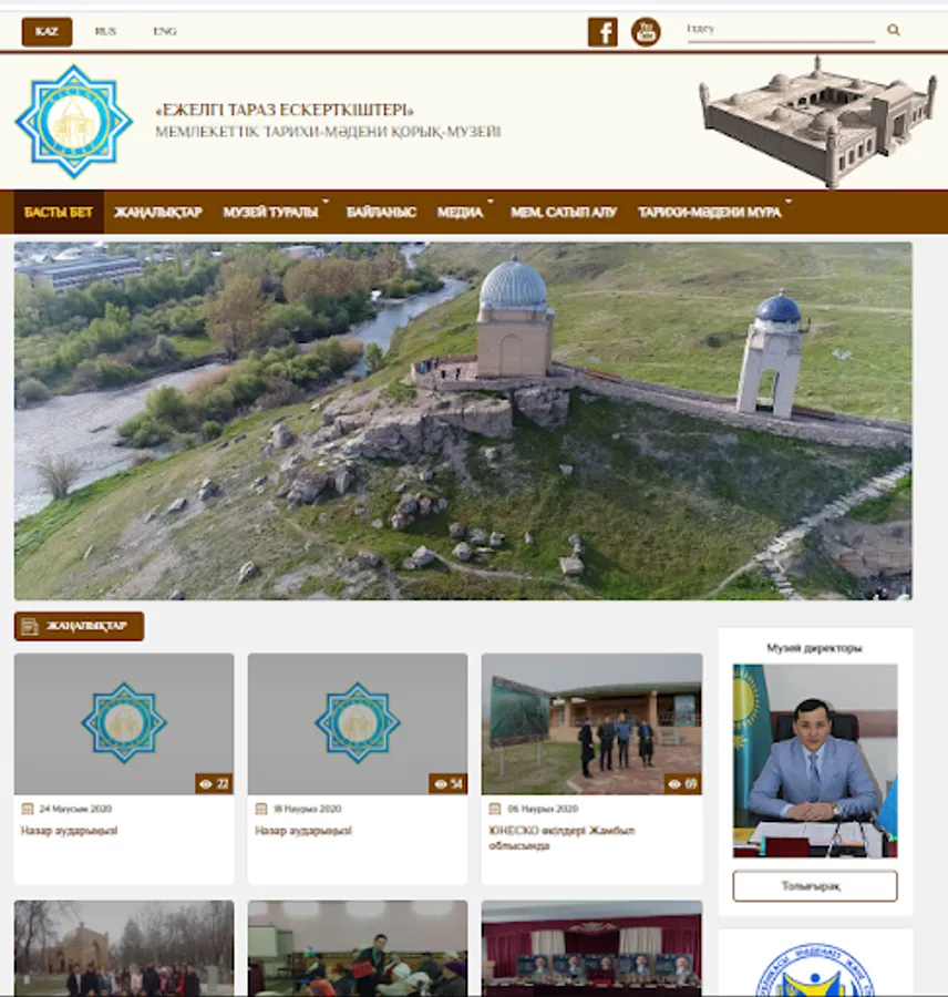 These monuments are documented in accordance with the Law of the Republic of Kazakhstan "On protection and use of historical and cultural heritage" and on the basis of relevant regulations. Their computer system was developed, included in the electronic database and installed on electronic plates. The institution is located in Taraz, Bekturganov Street, № 3 - in the building of an architectural monument built in 1900. (former officers' house, taken under state protection).