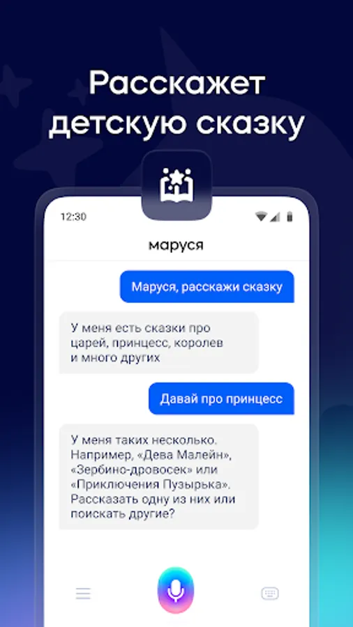 💭 Marusya, read fairy tales. He will tell thousands of magical stories, teach you how to count, play games, turn on songs and cartoons - in general, he will find something to keep your child busy while you are busy. And "Children's mode" will help protect against "adult" answers and music.