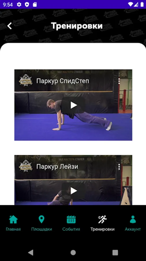 An app for individual street sports training from masters of styles in parkour, workout, breaking, stretching, acro and offi.
