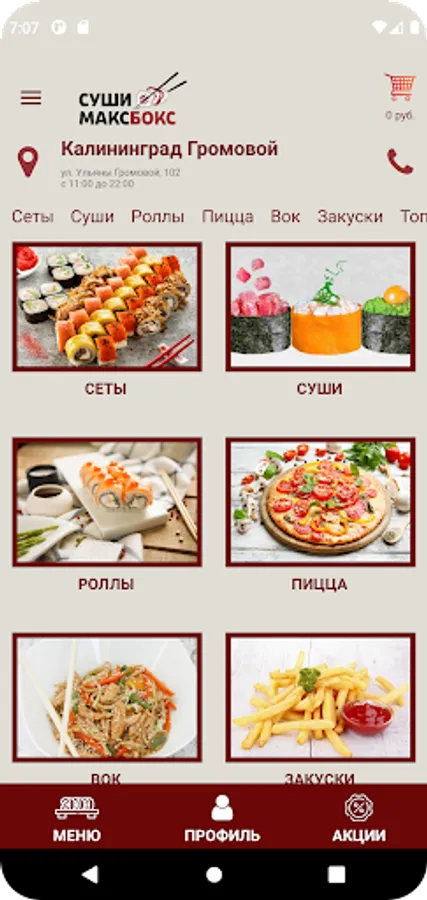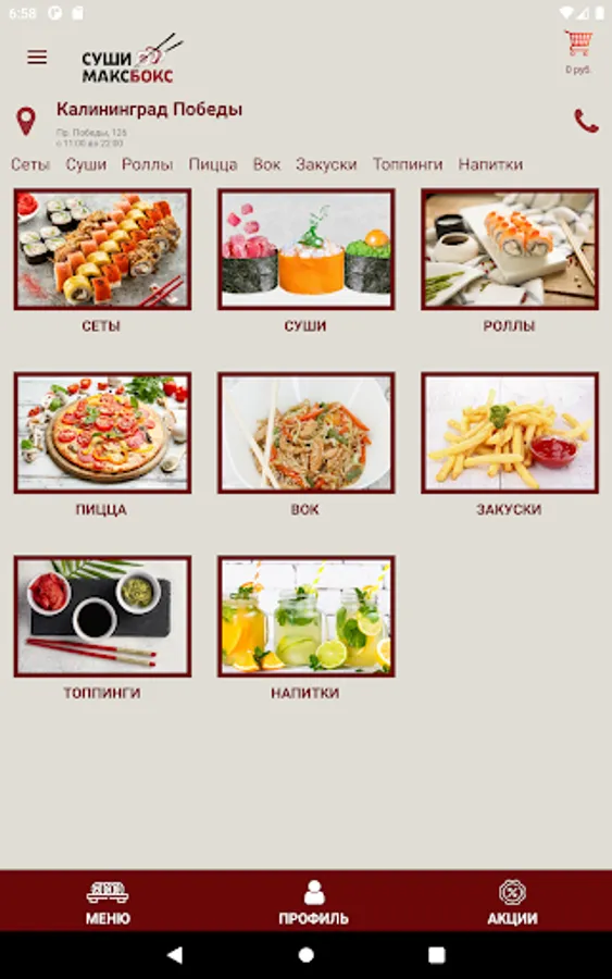 The application is designed for quick and easy ordering of the entire range of the Max Box sushi and pizza delivery network in a few clicks!.