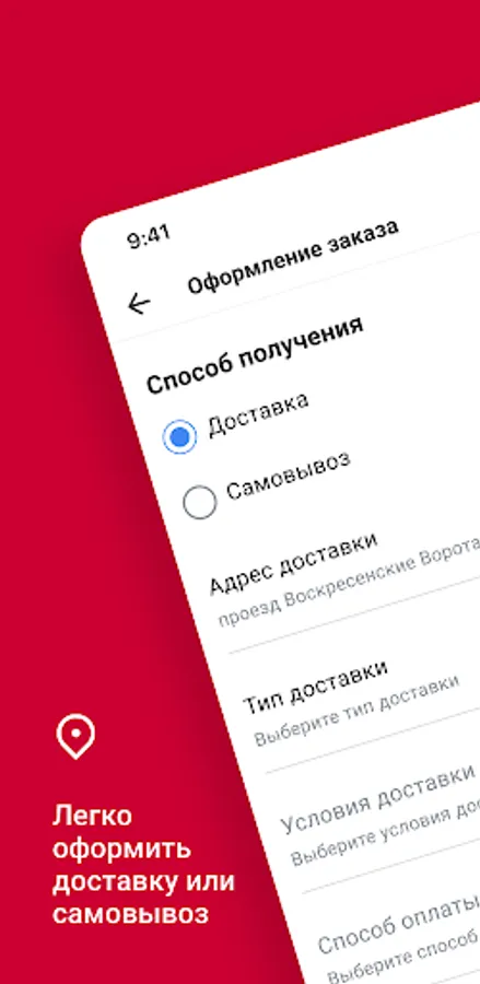 - 20 hypermarkets in 7 regions of the Russian Federation, where you can pick up orders placed in the application;