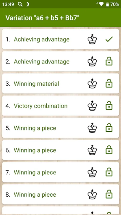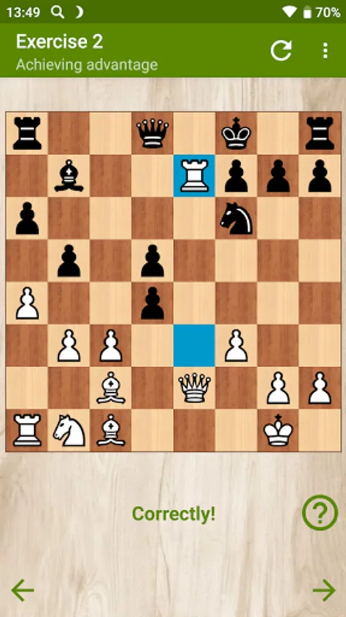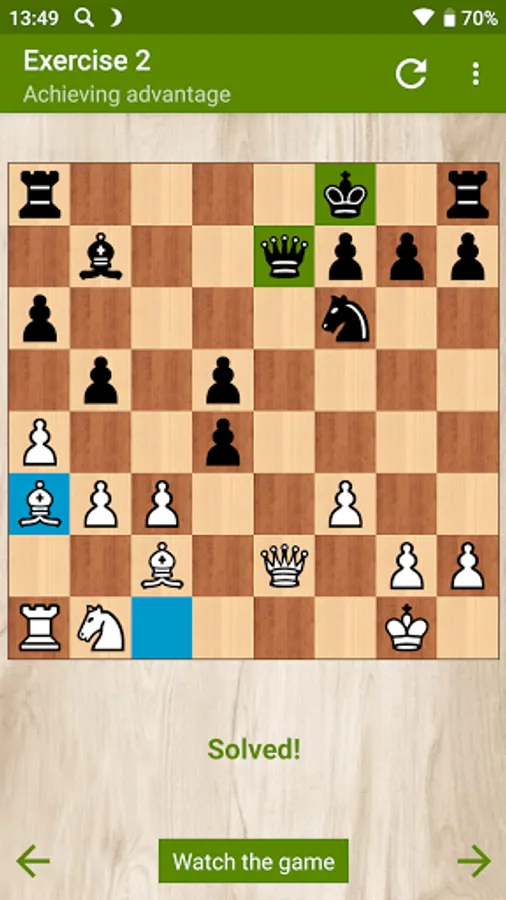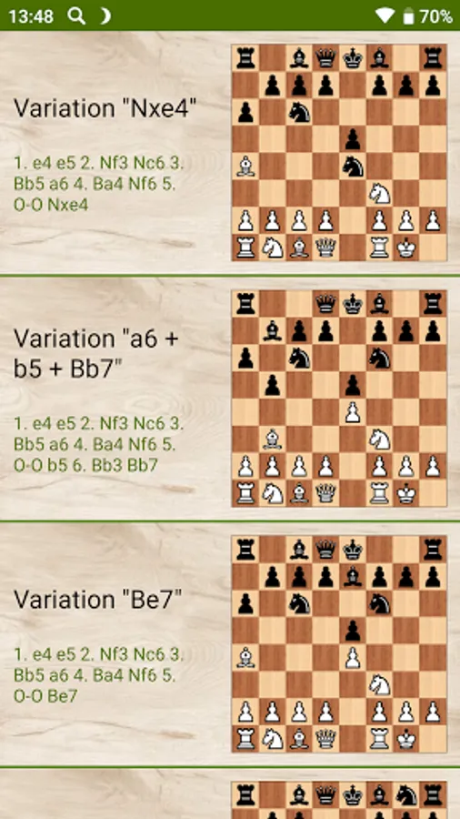 The free version of the app "Chess - Ruy Lopez Opening" contains 81 interesting exercises on victory combinations, gaining an advantage, winning pieces and checkmating in a few moves. In the full version of the application, about 500 tasks are waiting for you.