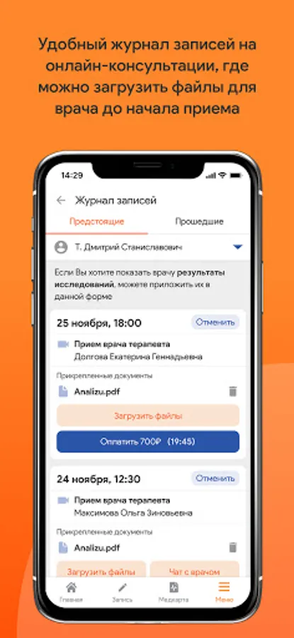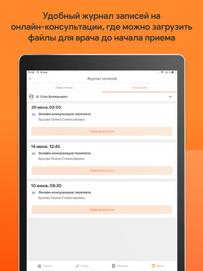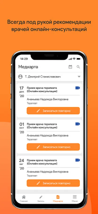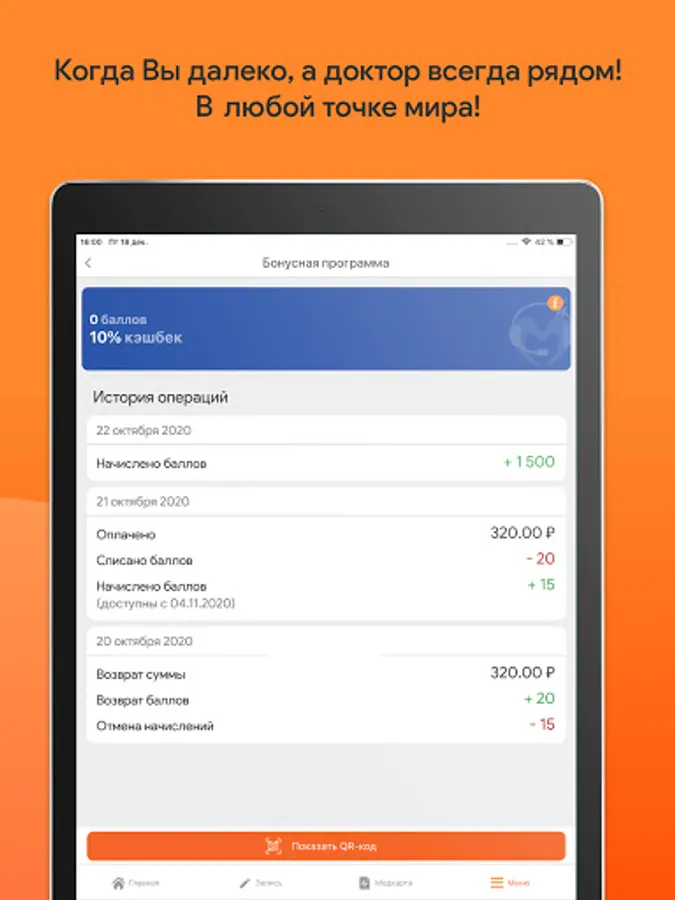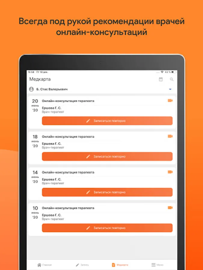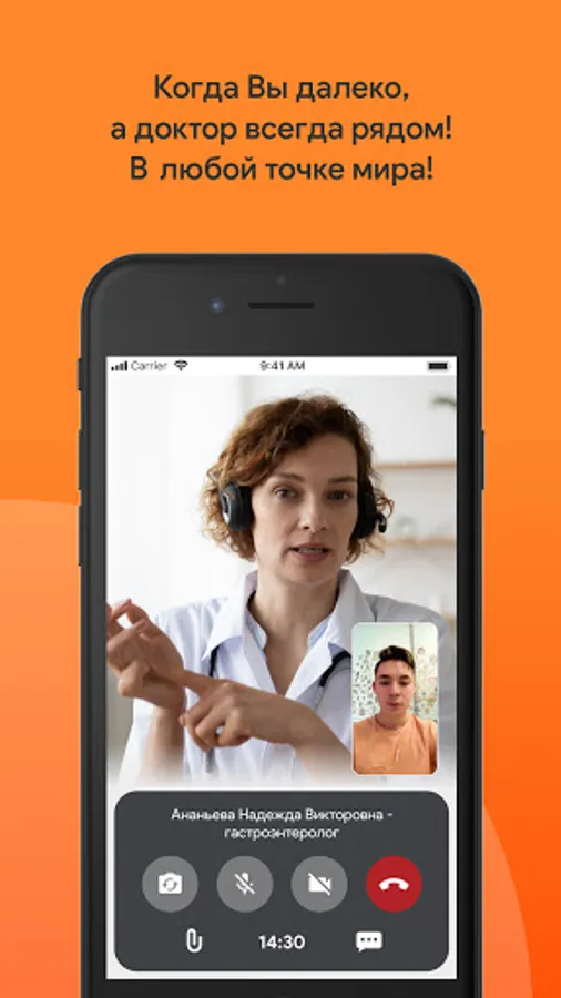 - The ability to consult a doctor online from anywhere in the world, via video communication. The doctor will answer all questions, comment on the tests and examinations attached by you, give recommendations and draw up a conclusion, which will also be always available in the "Medical card", in the application.
