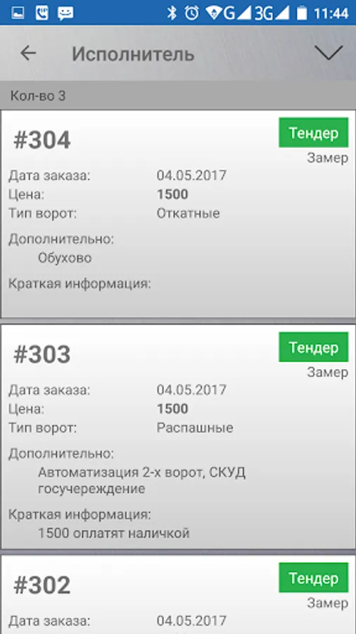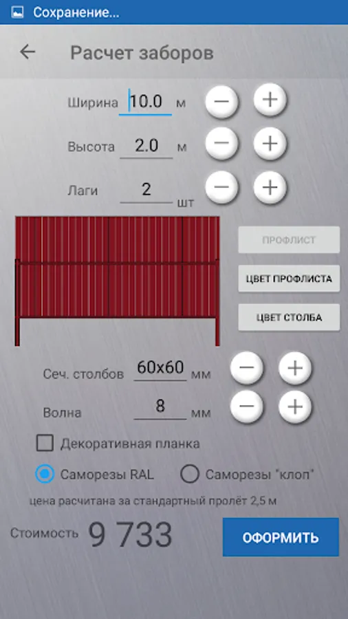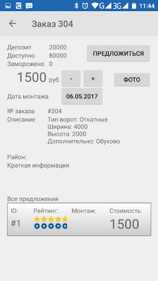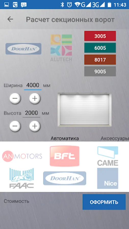Mobile application for the calculation of the cost of sliding and sectional doors, ordering customers and installers.