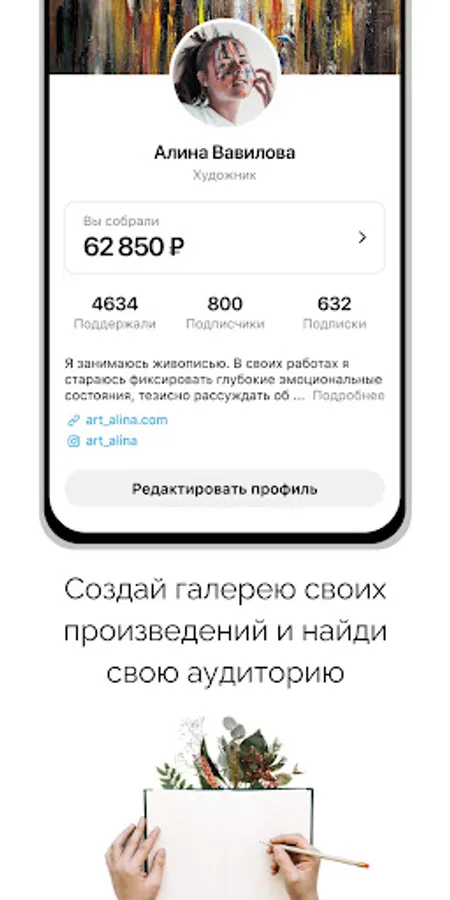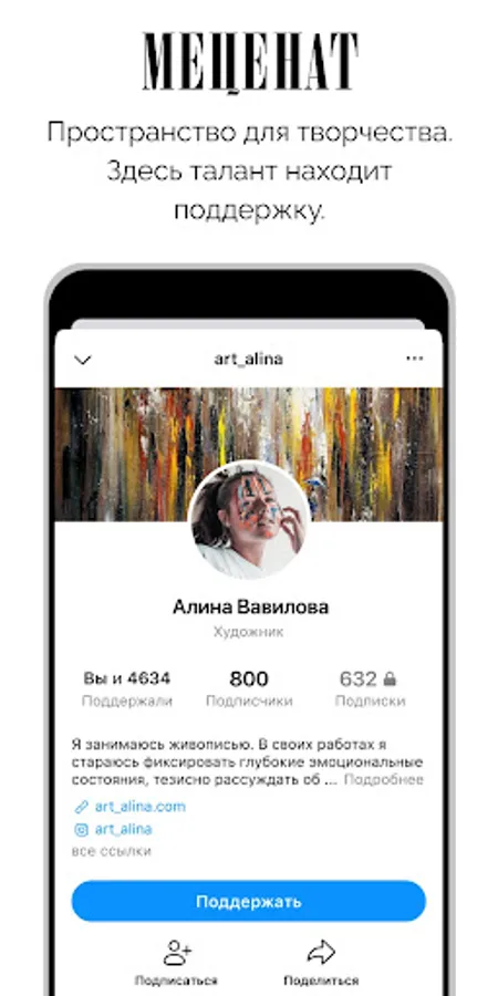 Tell your subscribers, friends, acquaintances about the opportunity to support you by sharing a link to your profile in the Patron application.
