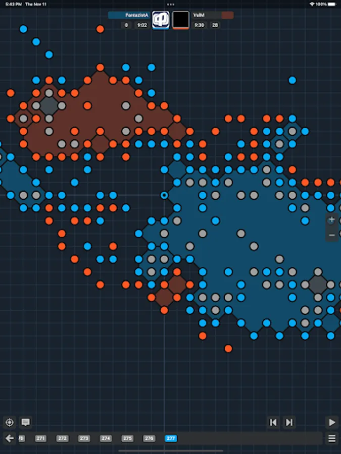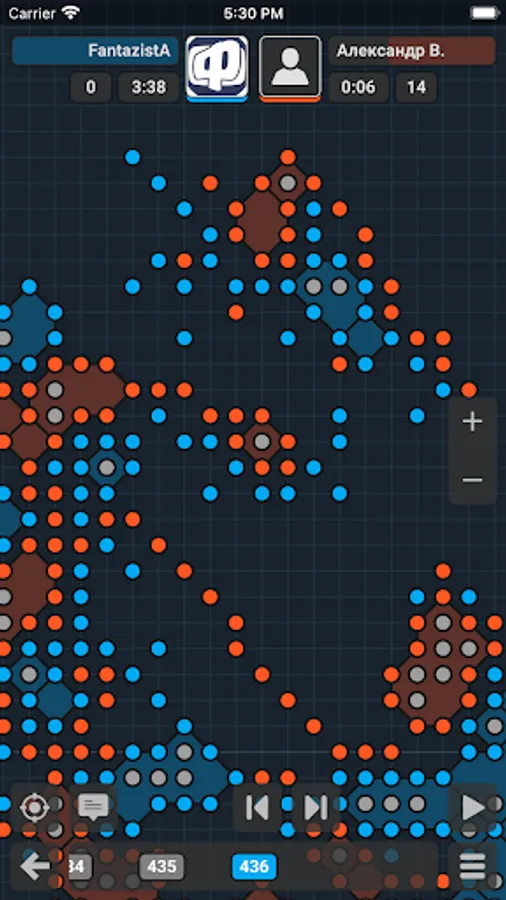 This game is one of the varieties of Chinese "Go". It is a logical board game with two users playing. You can play against an artificial intelligence or other players from all over the world. Each player is assigned a color and puts dots on line crossings. The players take turns to put dots of these colors on the playing field.