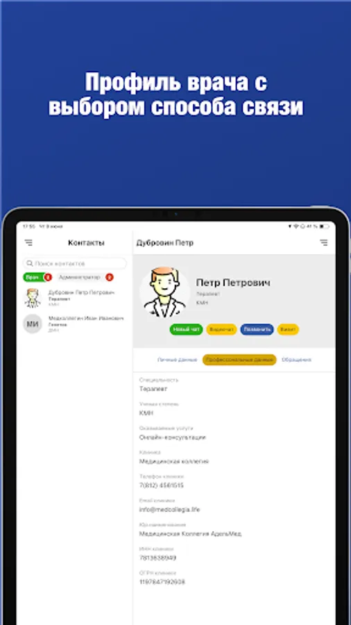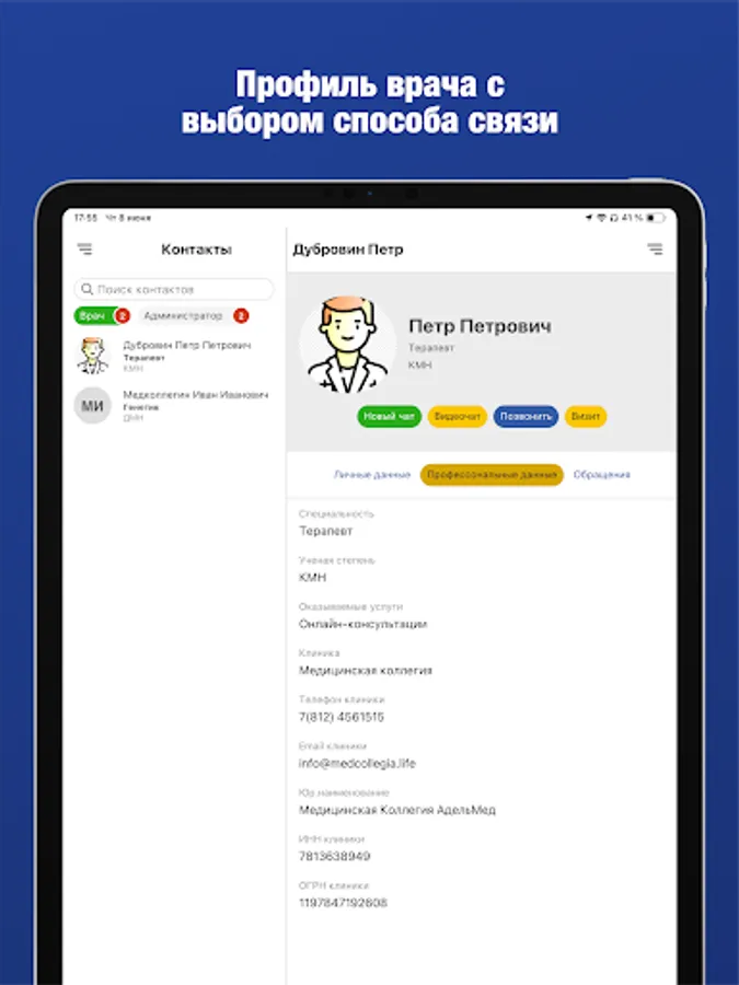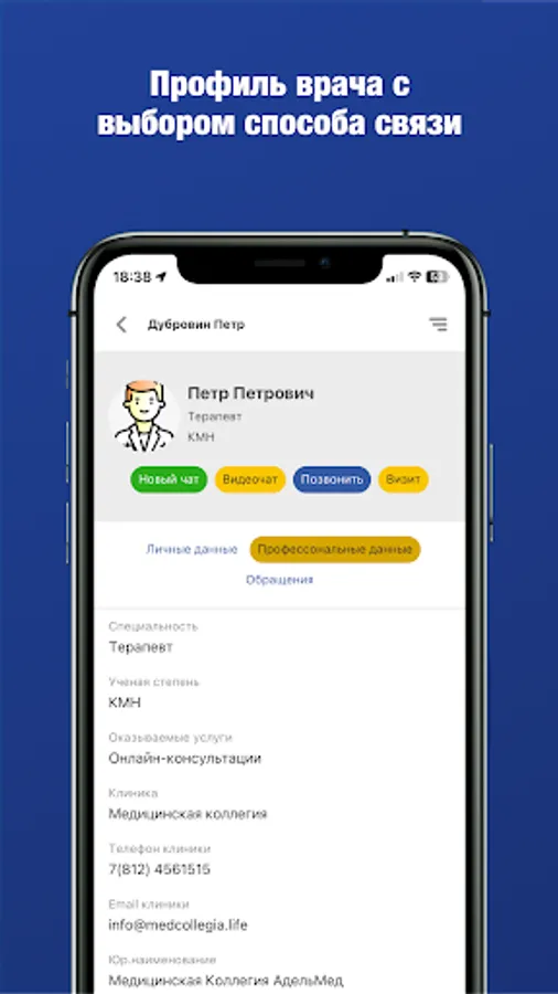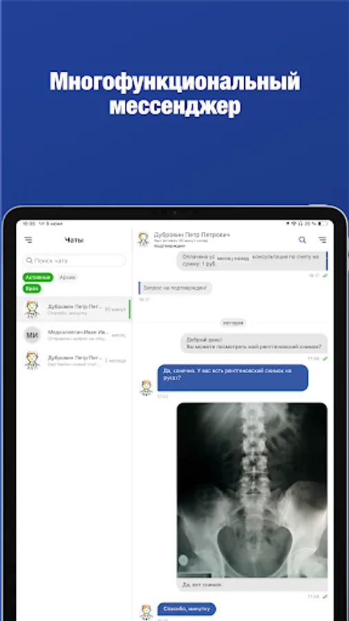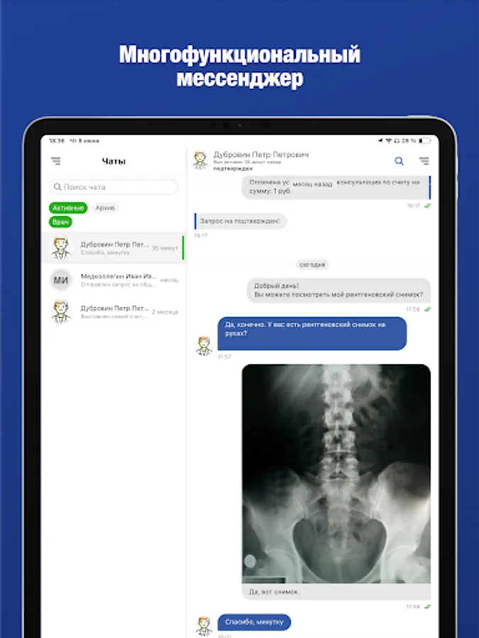 • Promptly contact the doctor of the desired profile in the chat. Ask a question about the current state of health, prescribed treatment, medication, etc.