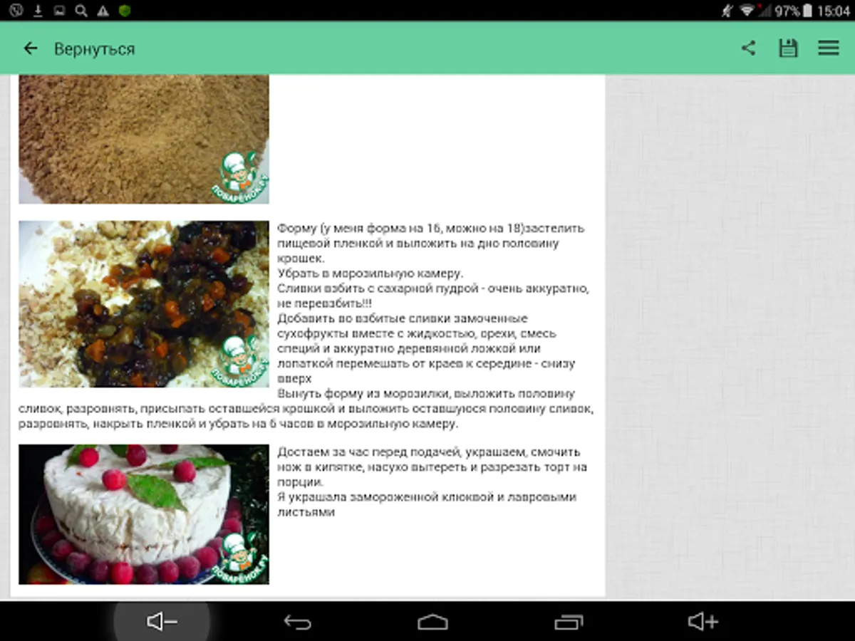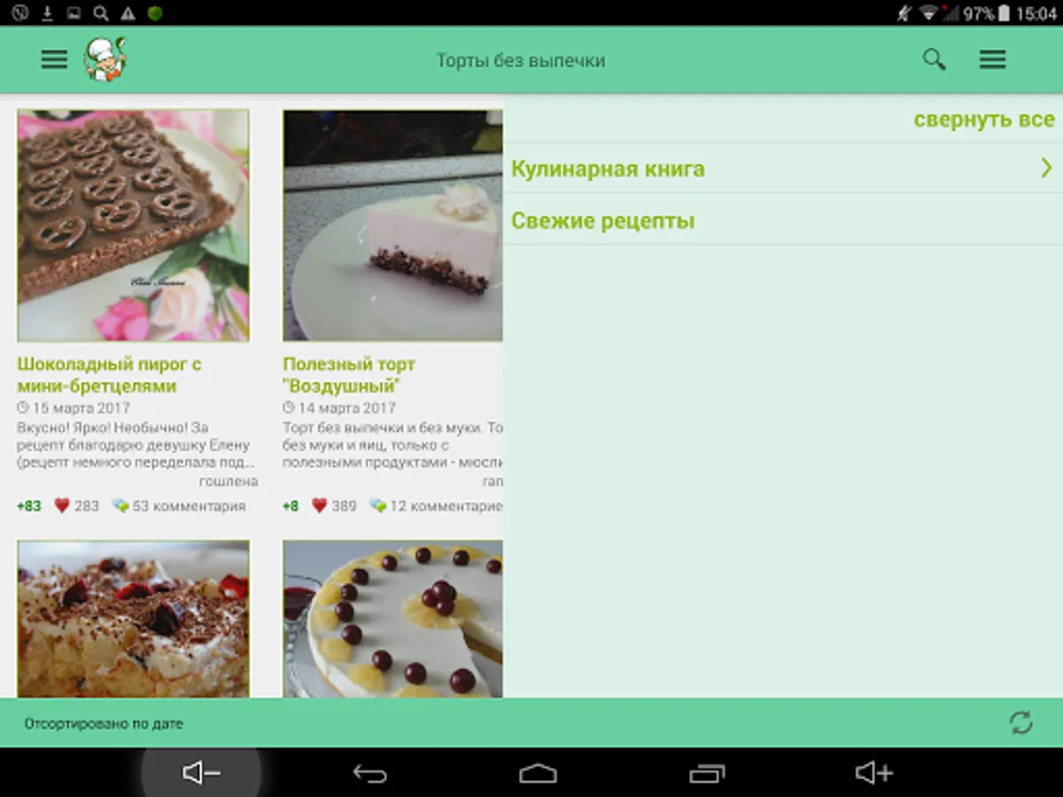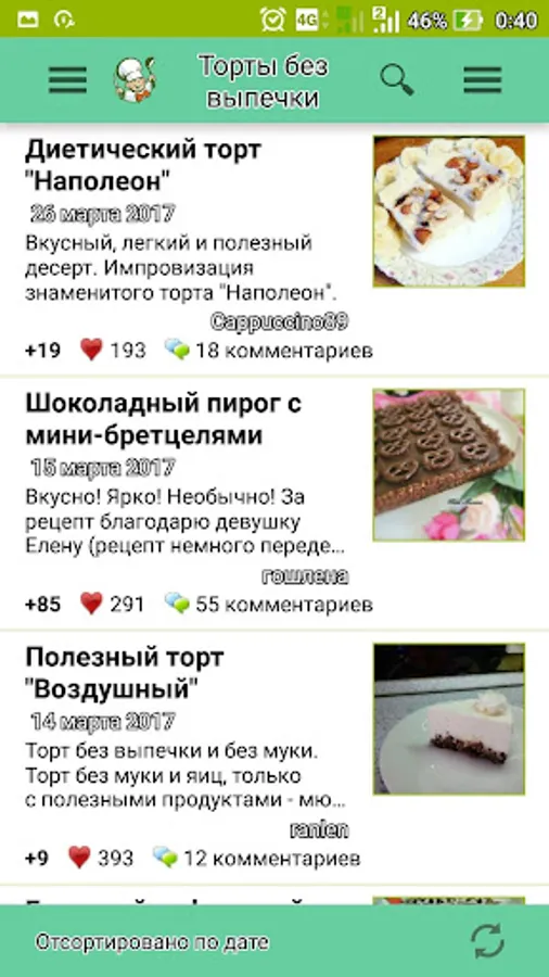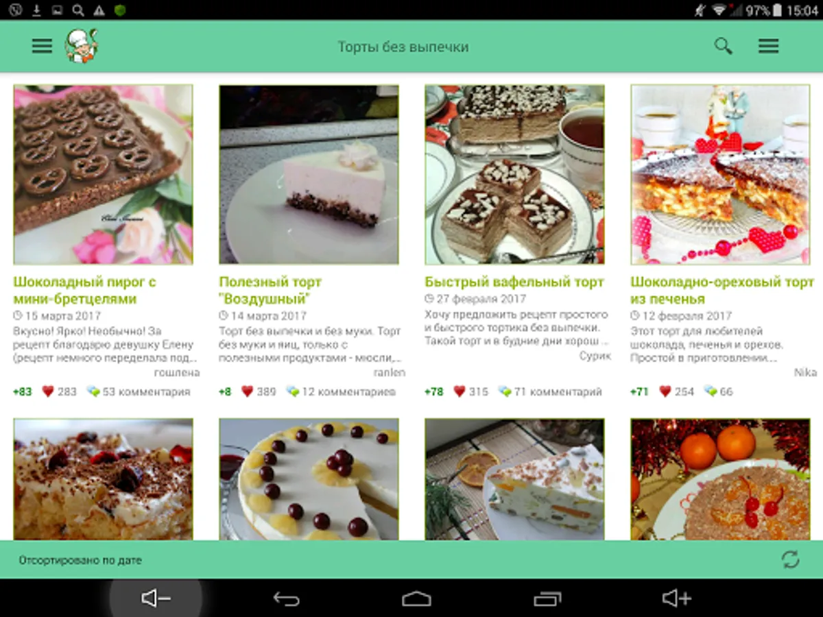 Also in the annex Povarёnok.ru you will always find a great variety of recipes for a variety of desserts that do not require baking. Delicious cakes "Tiramisu", delicate strawberry cheesecake, crumbly cake and favorite childhood sweet sausage - this is not an exhaustive list of what you can treat yourself and your loved ones!