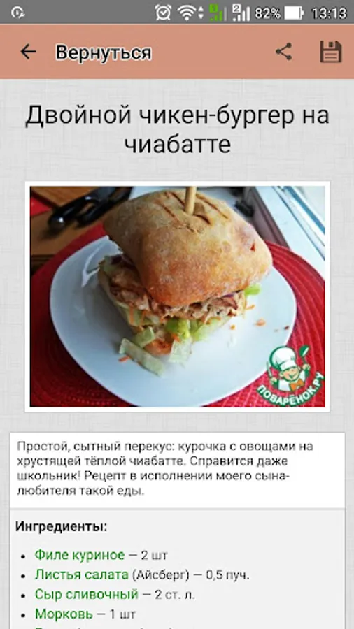 With the app Povarёnok.ru no longer need to buy hamburgers and hotdogs in fast food restaurants, because homemade food is much tastier and much healthier! And most importantly - you always know exactly of what exactly it is cooked!