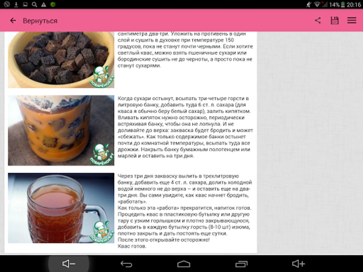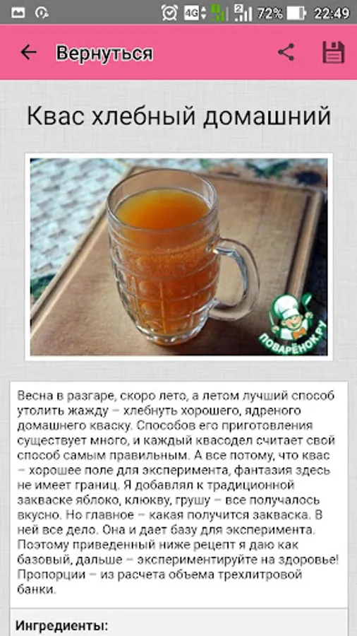 With Povarёnok.ru you can always experiment - try to prepare home brew with the yeast or without yeast, and pamper your loved ones a wonderful kvass from dried bread or rye bread.