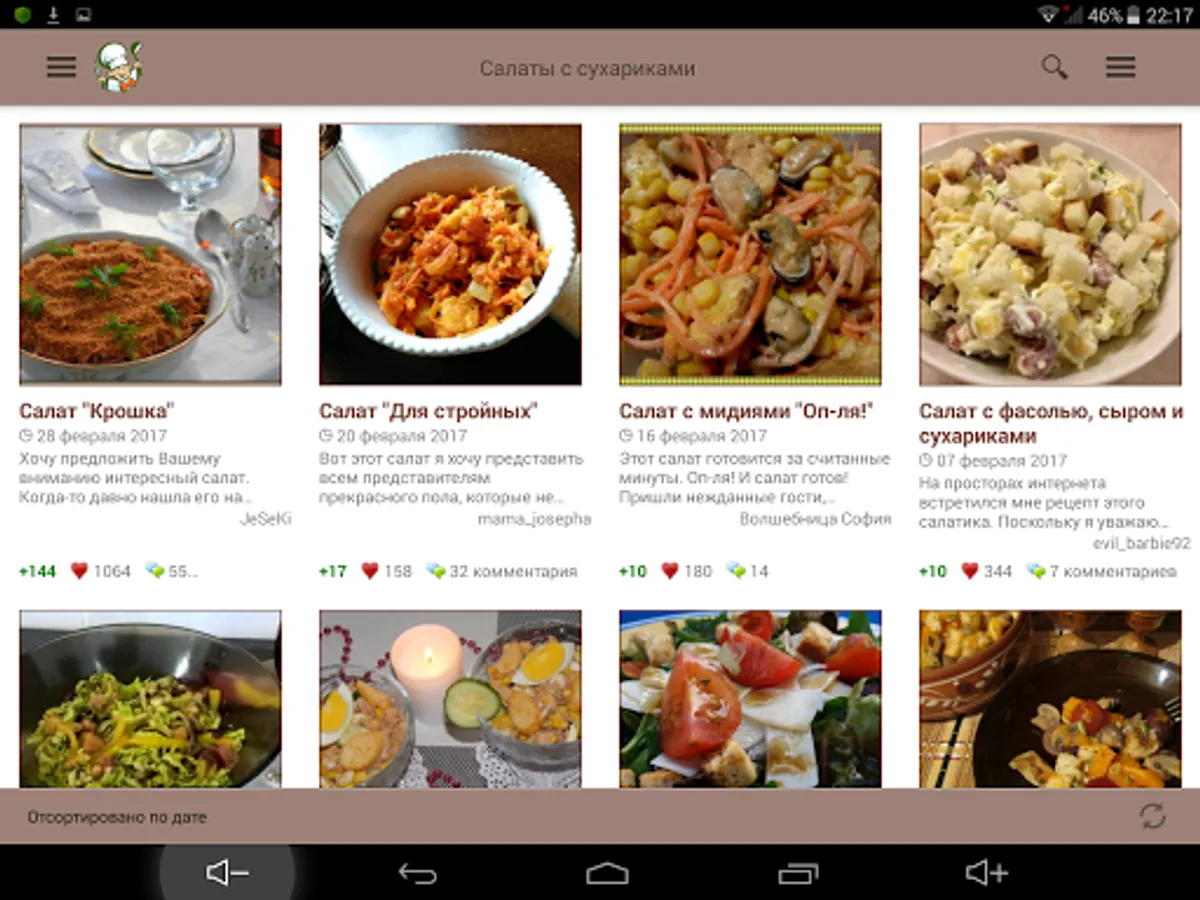 Rusks loved by many, so they are very happy to add to soups and salads - they allow you to make any dish a unique taste. Be sure to prepare a popular salad with croutons or sprats great salad with croutons and bacon! And to find the recipes of these wonderful dishes (and not only them), you can always in the culinary application Povarёnok.ru!