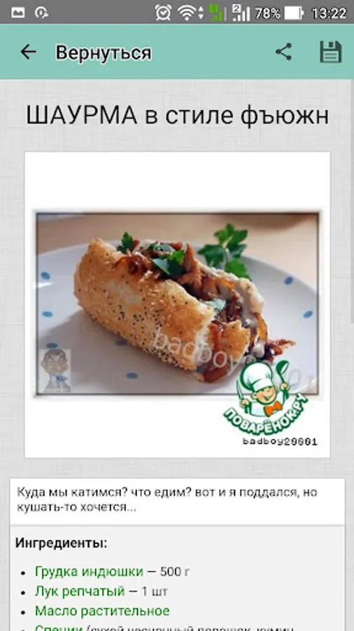 There is hardly a man who never in his life did not try this hearty dish. Now is the time to learn how to cook shawarma own, and it is not necessary it should be a classic shawarma, because it is always possible to prepare the dish from the fact that there is in the refrigerator. And to cope with this problem the best way you can help application Povarёnok.ru!