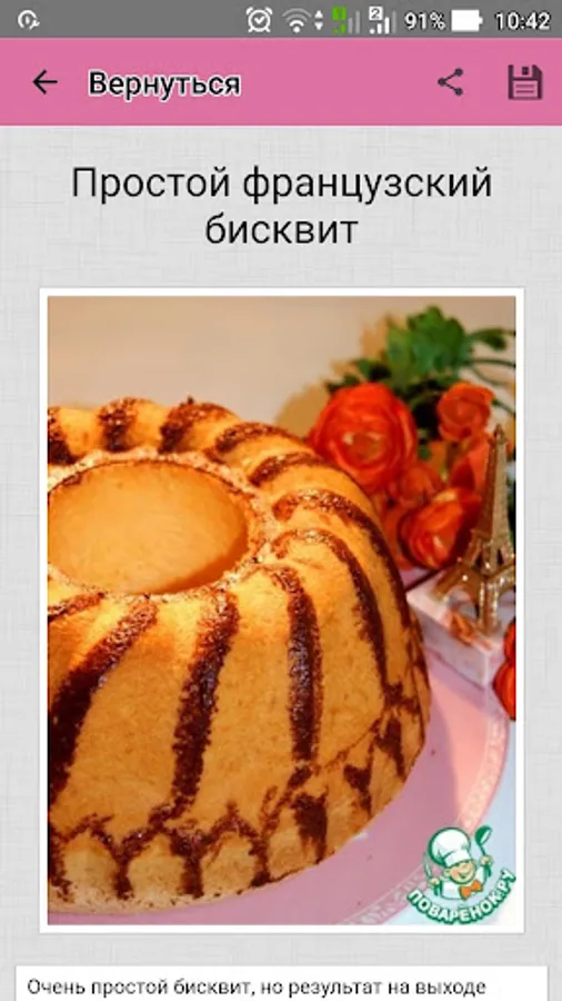 All you need to prepare the biscuit dough - it's eggs, sugar and flour. And to biscuit dough was soft and lush, look at Povarёnok.ru app!