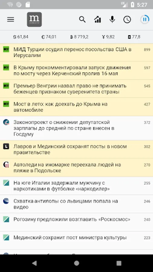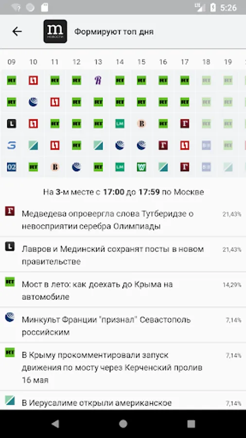 Yellow background in the tape marked "fresh" news, appeared during the selected period. Red background - news that is moving quickly up the rankings, "hot news."