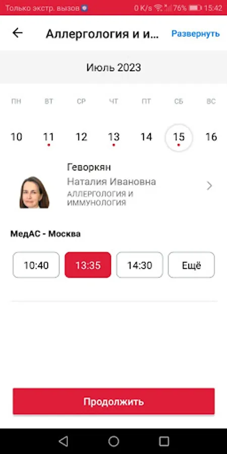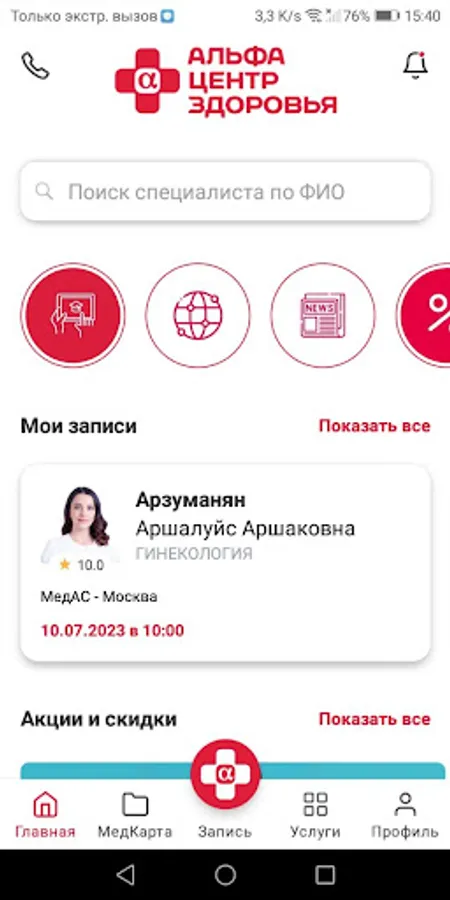 In the application, you can find the service or specialist you need, see its schedule and make an appointment without calling the clinic.