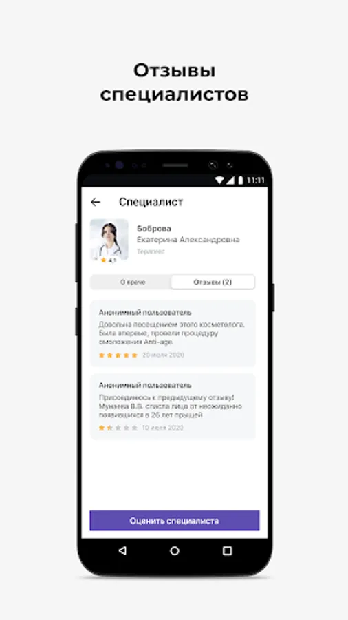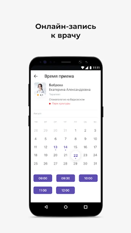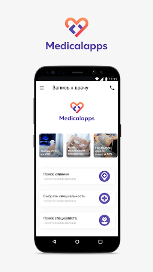 Main sections MedicalApps: Online recording - the closest to the right specialist at a convenient time in the 5 touch