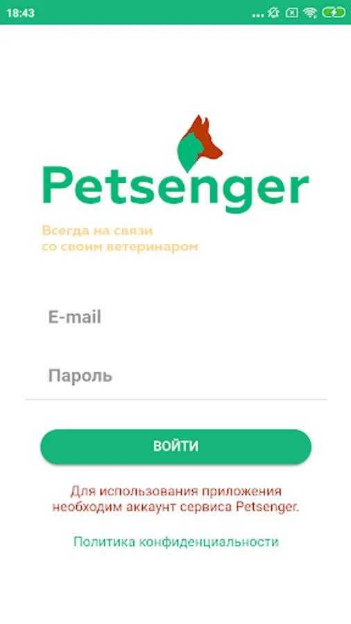 The application is designed for convenient access to the service of remote consultations with a veterinarian - Petsenger.