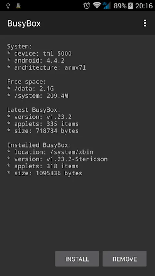 This application is a BusyBox installer for Android. Includes BusyBox v1.34.1 with 378 applets, the most comprehensive set of functions. Supports installation BusyBox from the application and via recovery from ZIP archive (see "Menu - Zip archive").
