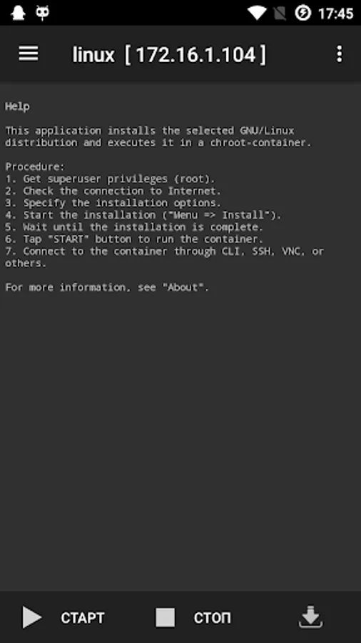 This application is open source software for quick and easy installation of the operating system (OS) GNU/Linux on your Android device.