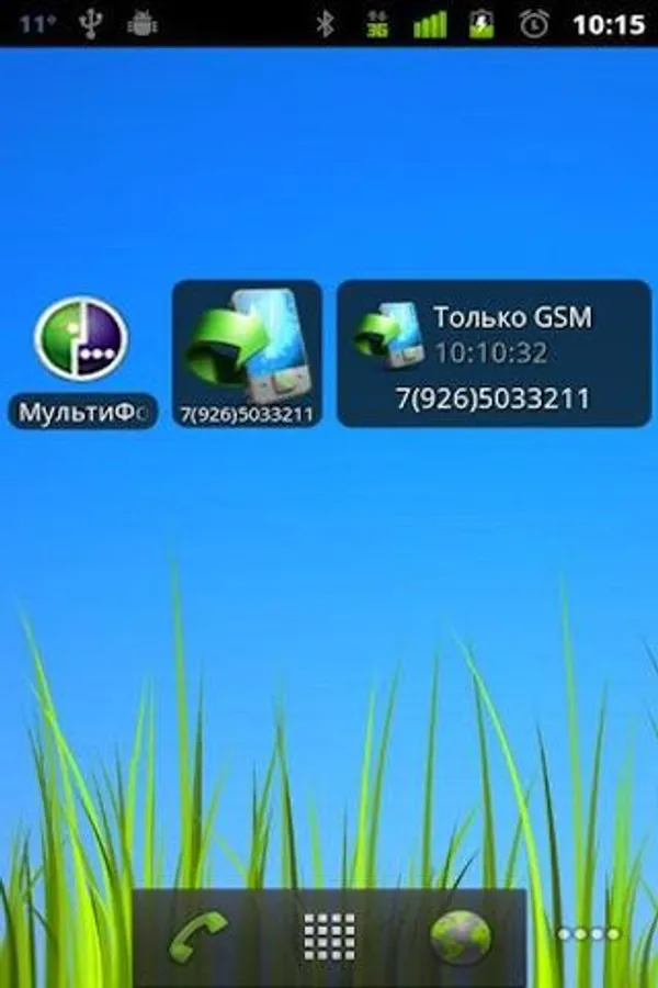 Widget "Multiphone redirect" is set to the desktop (desktop screen) from the "Widgets" on your mobile device.